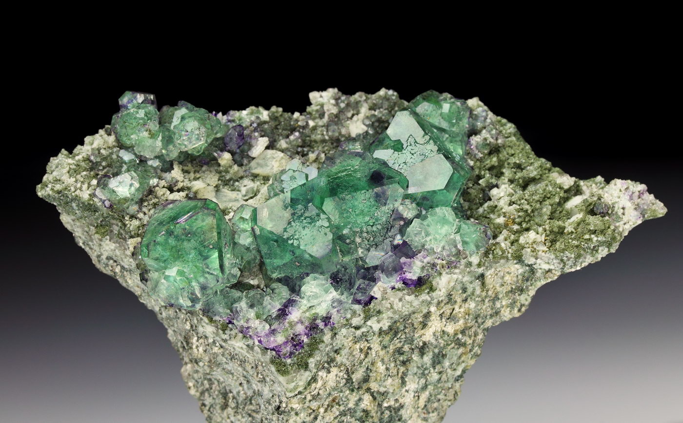 Fluorit-Oktaeder bis 1,7 cm KL auf Albit xx
