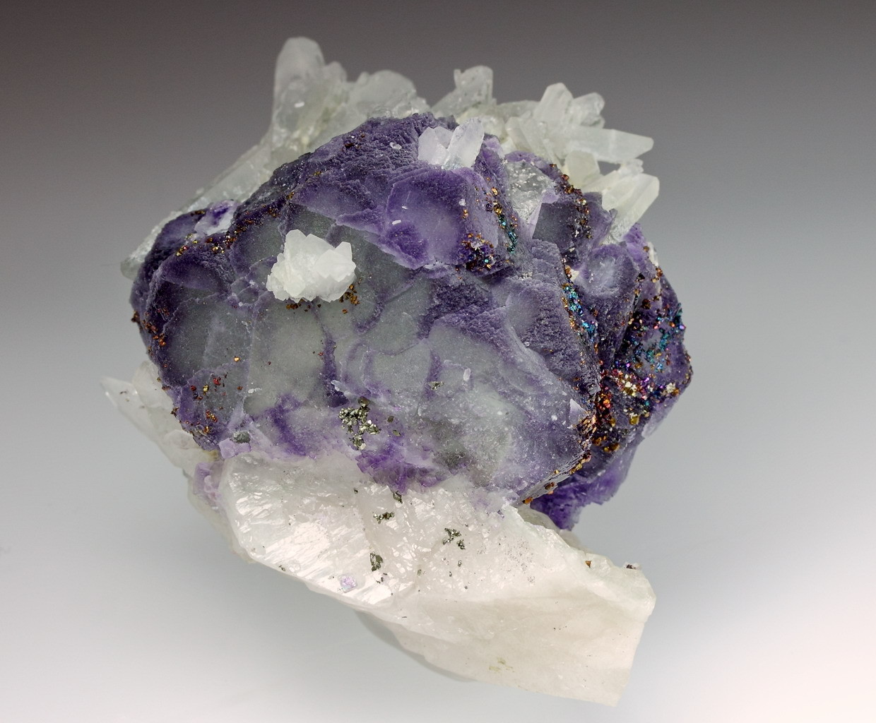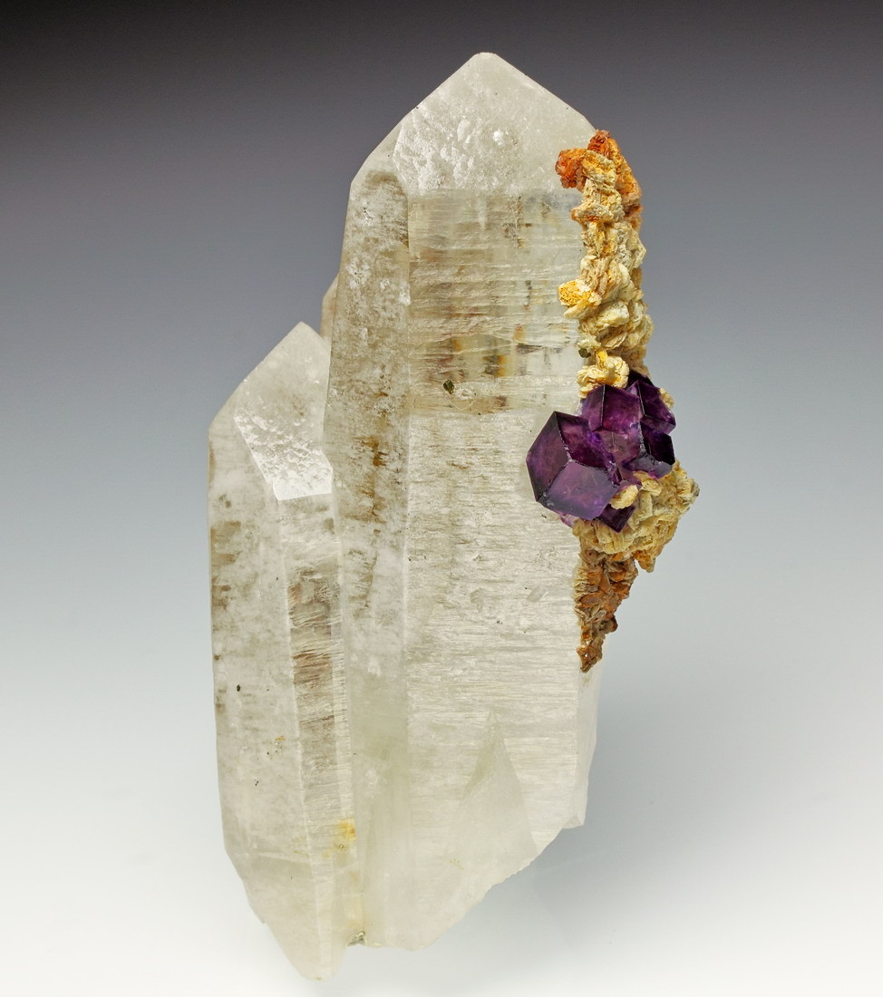 dunkelviolette Fluorit xx auf Quarz xx bis 8 cm mit Siderit xx