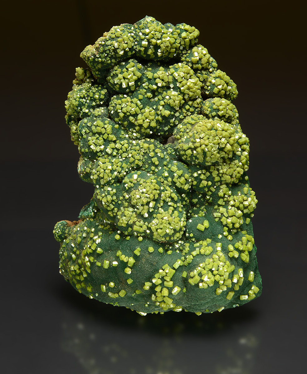 Verallgemeinert wird ja auch gern, dass Torbernit bei den kleinsten Einflüssen das Kristallwasser verliert und zum bröseligen, wachsgrünen Metatorbernit wird. Im Anhang das Bild einer Stufe (10 cm breit), die ich so bekommen habe. Da frage ich mich auch, warum die Kristalle nur teilweise entwässert sind. Ganz so einfach wird es wohl nicht sein.