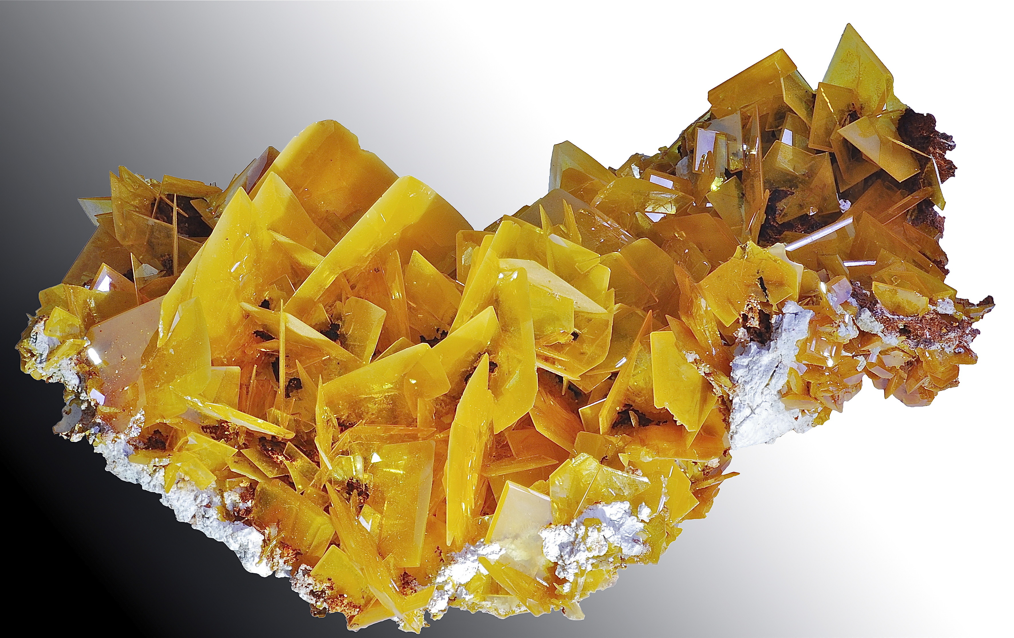 Wulfenit auf Hydrozinkit (für beide Minerale ist Bleiberg die Typlokalität)