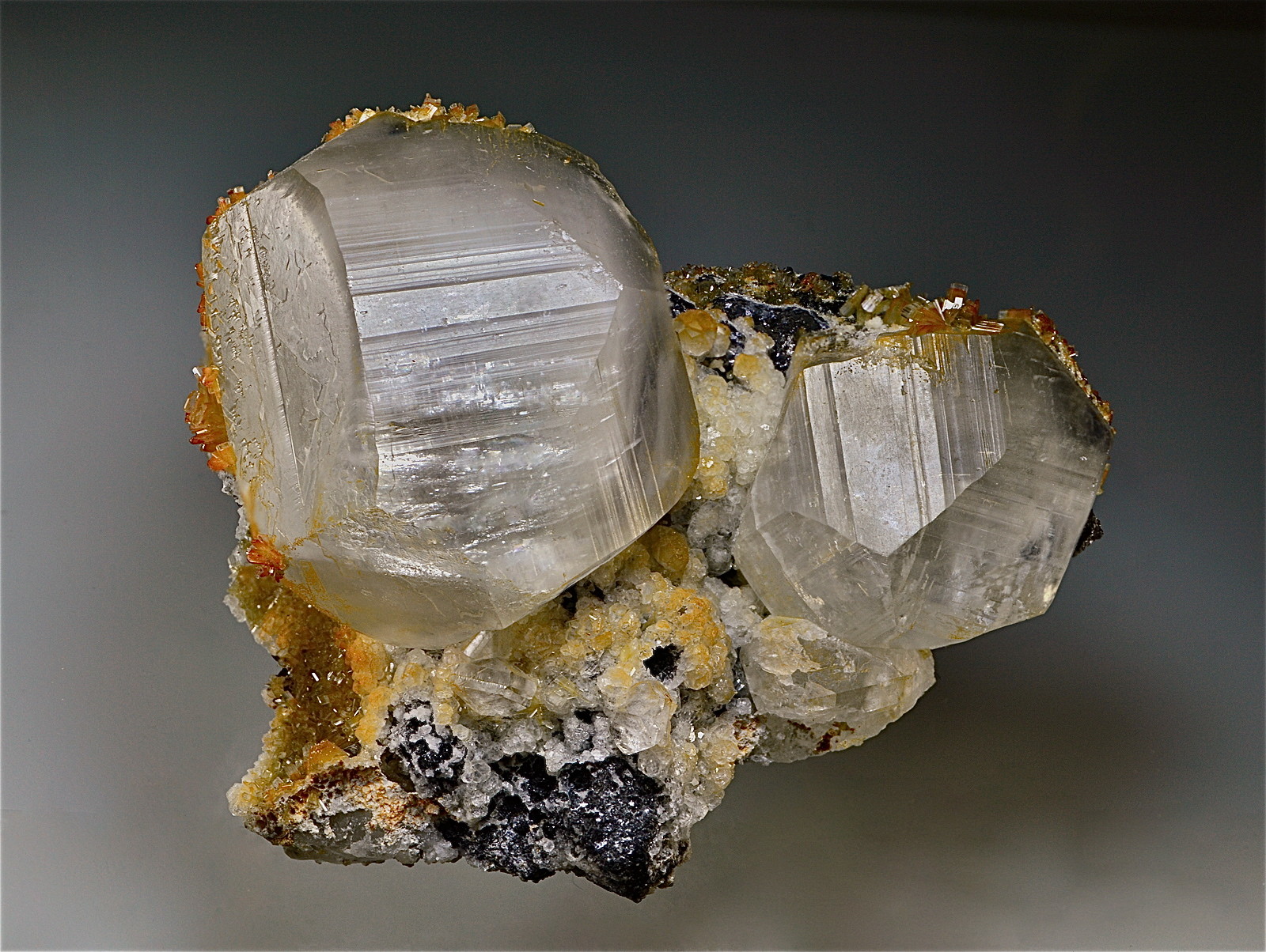 Gedrungene Calcitzwillinge aus Bleiberg: