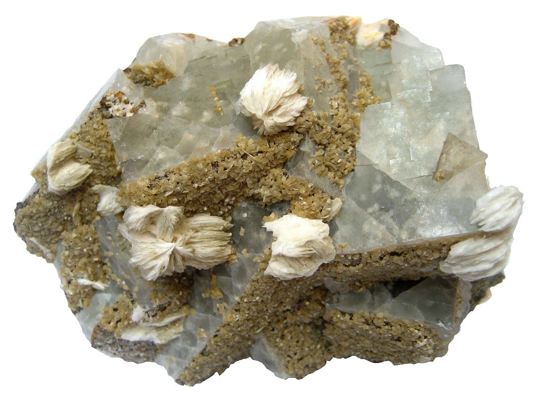 Hier ein Fluorit mit Baryt und Dolomit aus der Grube Tannenboden bei Wieden im Schwarzwald: