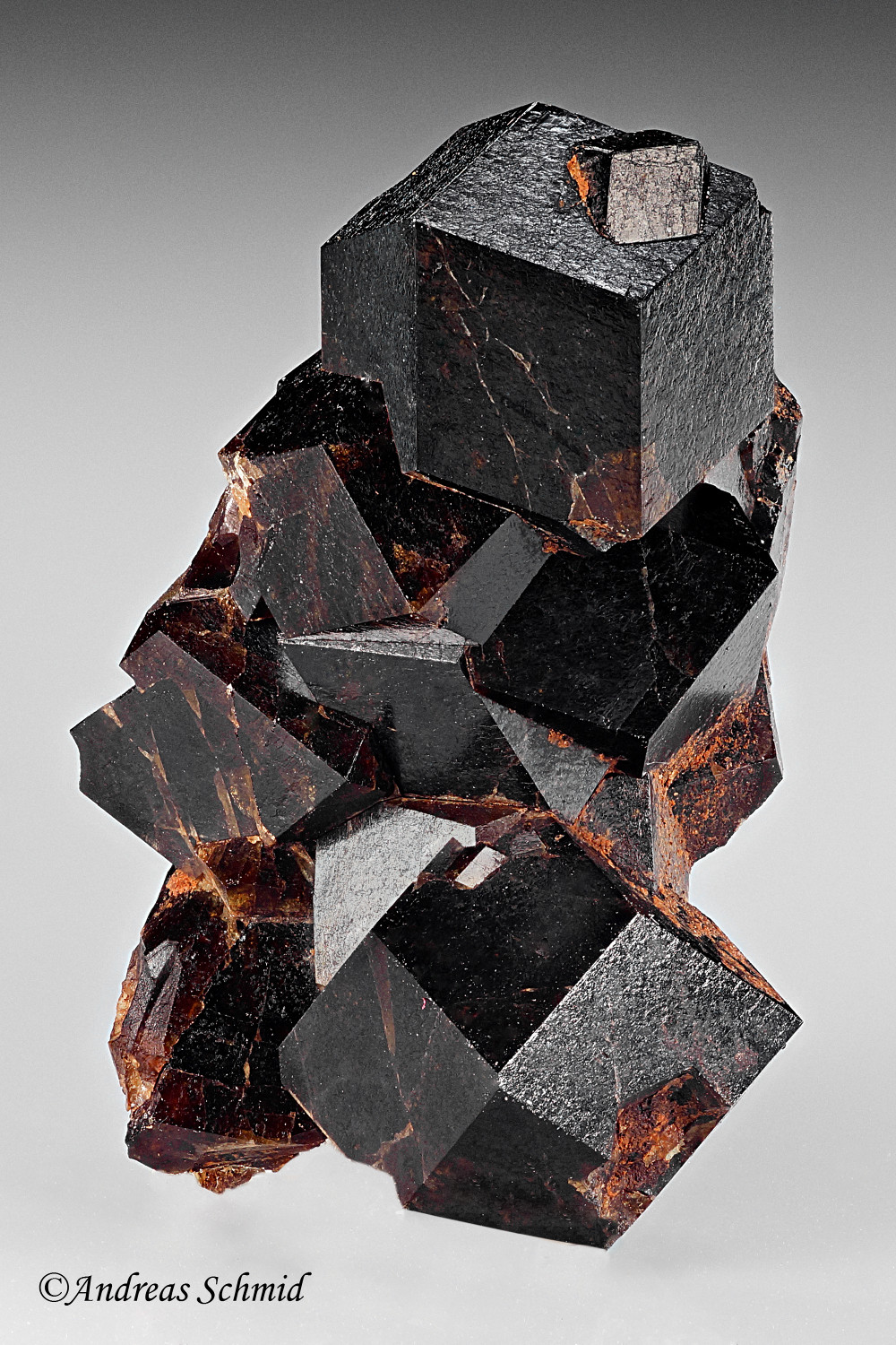 Spessartin auf Rauchquarz, Wushan, China