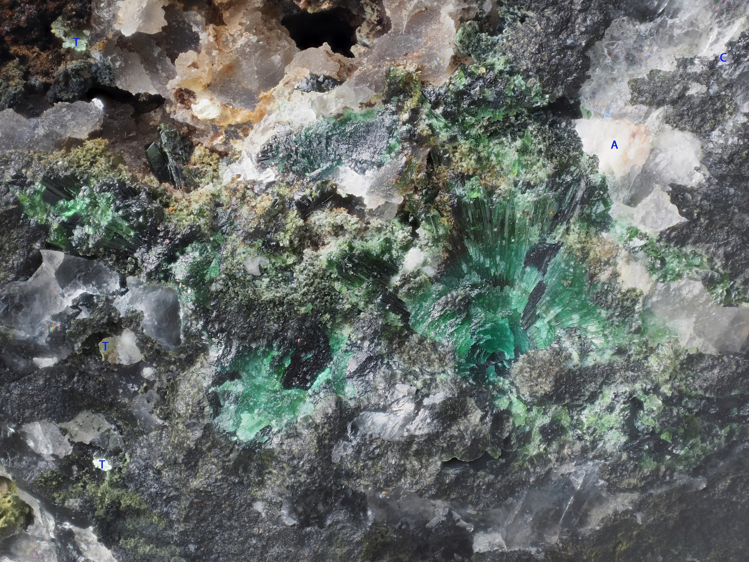 kannte ich bis vor kurzem auch nicht. In der Teil-Sammlung waren einige gute Stücke aus der Kupferkies-Paragenese, wobei dieses das Beste ist. Für mich neu waren auch diese in Quarz eingeschlossenen Brasilianite: