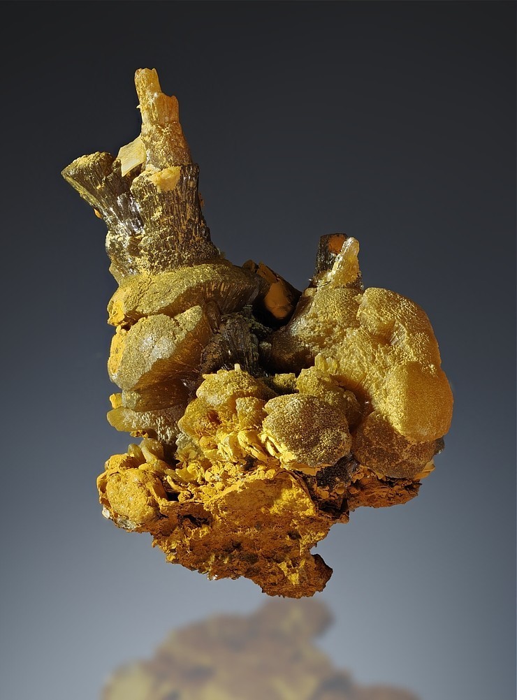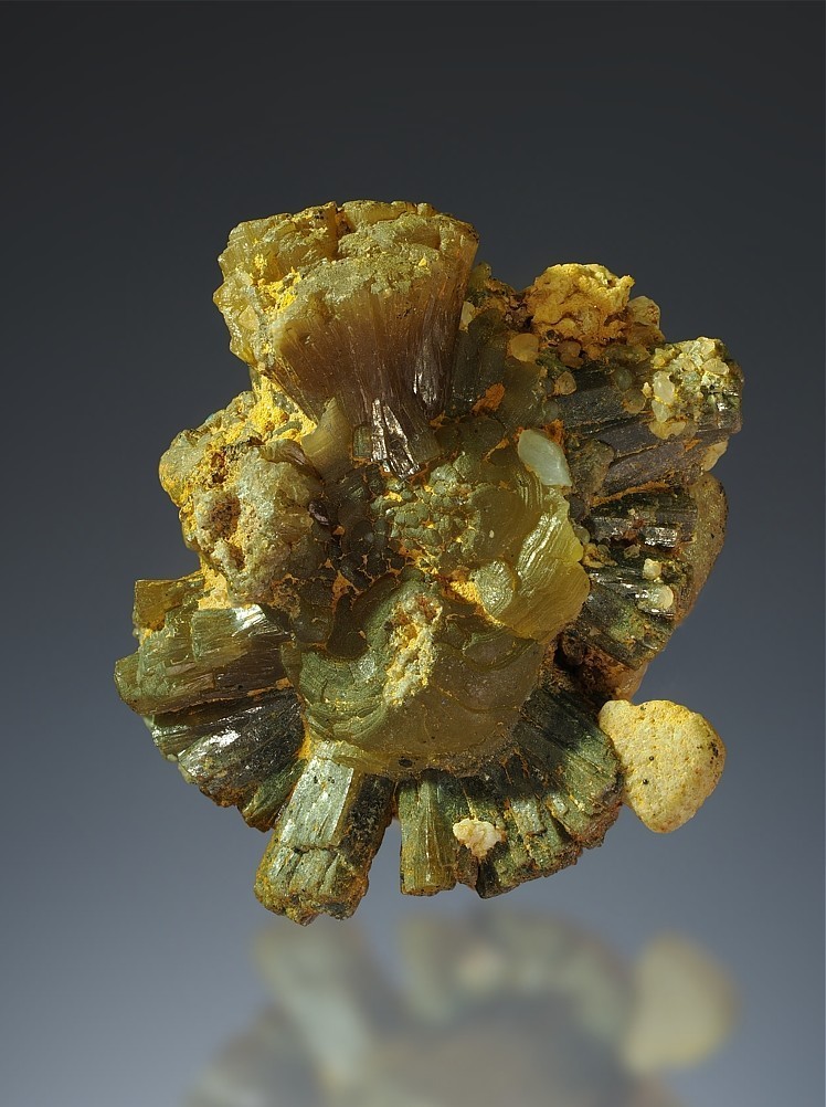 Stewartit auf Columbit mit Laueit und Strunzit.