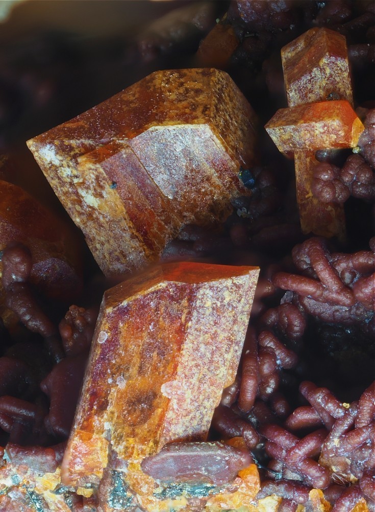 heute ein Bild mit Eleonorit rotbraun mit Strunzit (strohartige Nadeln) von der Silbergrube bei Waidhaus.