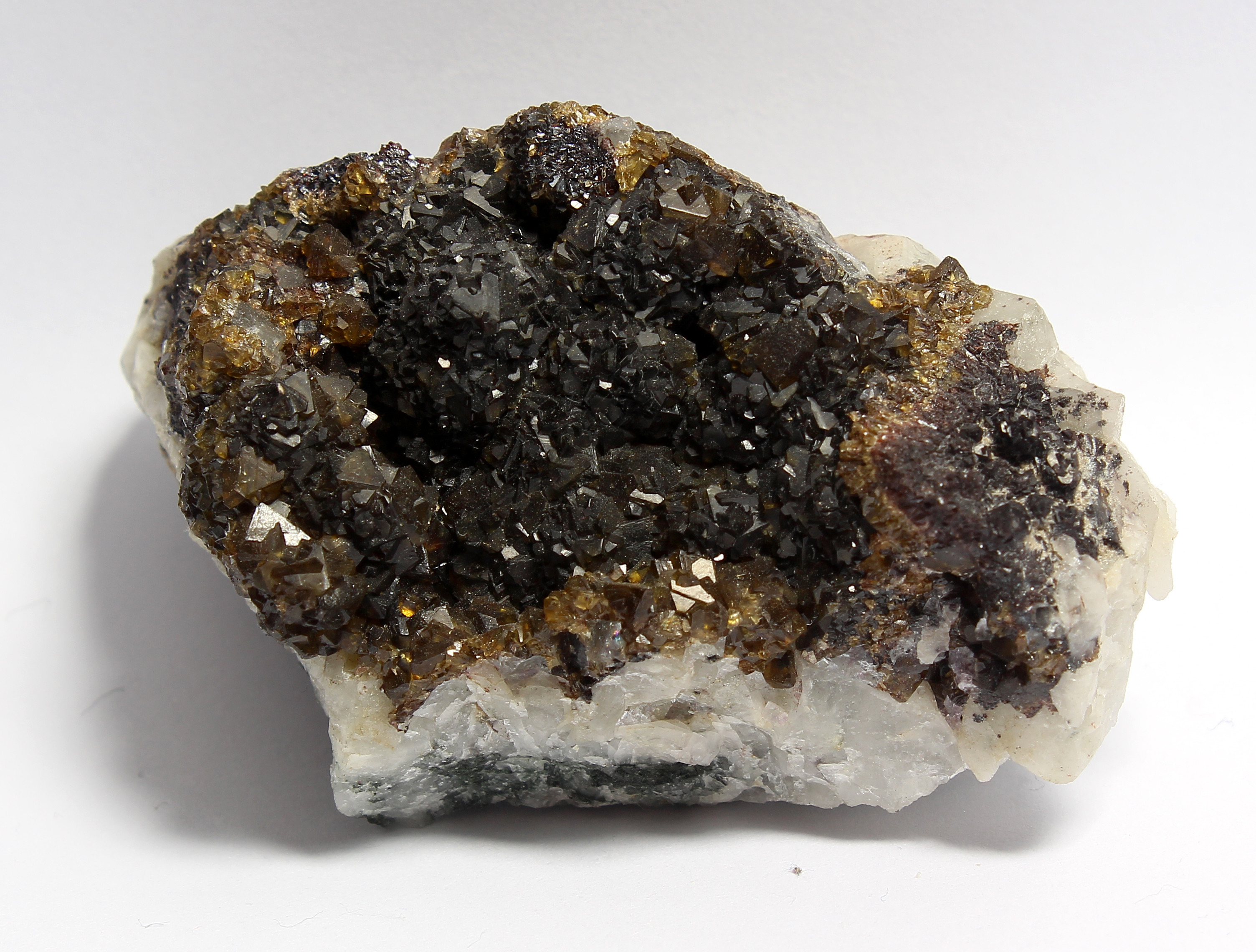 1. Calcitrhomboeder auf Aragonitnadeln, 4 x 3,5 cm