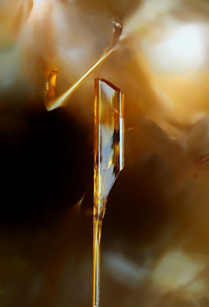 Danke für dein Lob. Die Stüfchen werden liegend auf einer Glasscheibe fotografiert. Darunter findet sich ein Dunkel-Hell-Verlauf, der durch Beleuchtung einer schräg angebrachten weißen Karte erzeugt wird. Nach den Aufnahmen des Stüfchens und dem Stacking, folgt die Bildbearbeitung (Helligkeit, Kontrast, Farbkalibrierung etc.) Ist das Bild fertig bearbeitet wird das Objekt digital vom Hintergrund getrennt (maskiert) und auf einer zusätzlichen Bildebene eingefügt. Es wird dort gespiegelt, entschärft (Gauss) und bekommt eine Transluzenz.