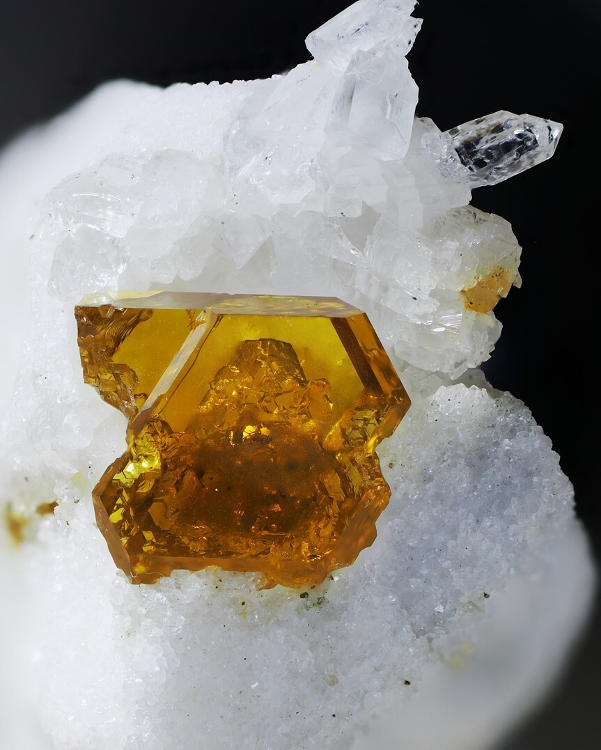 Es ist verblüffend, welche unterschiedlichen Kristallformen Zinkblende am Lengenbach ausbildet. Zudem sind die Kristalle meist eisenarm und deshalb auch schön hell und transparent. Die rundlichen Formen finden sich am Lengenbach immer wieder und stellen Wachstumsformen, keine Auflösungserscheinungen - wie etwa bei rundlichen Diamanten - dar. Es gibt dort auch Auflösungsformen - diese wirken dann aber meist zerfetzt und angeknabbert.