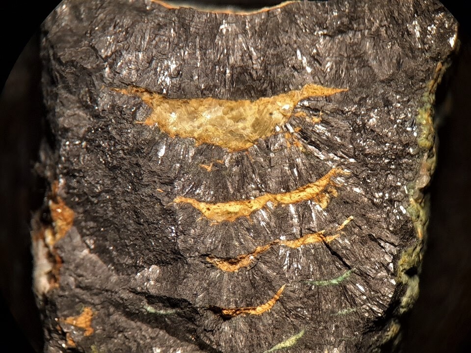 Vom Steinbruch am Zeilberg bei Maroldsweisach hab ich ein nettes Stüfchen mit Nadelpyrit bekommen.