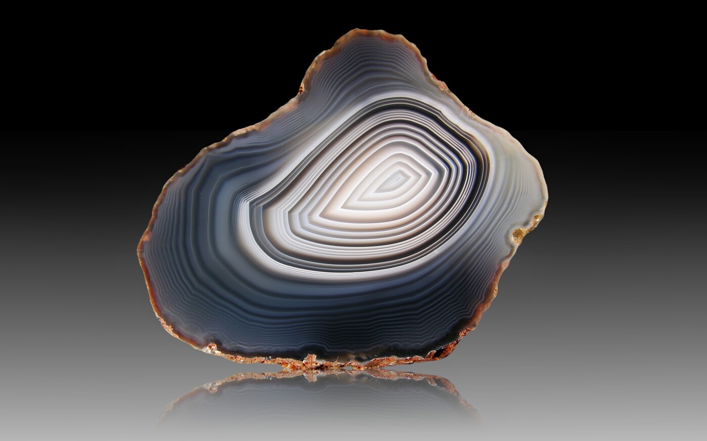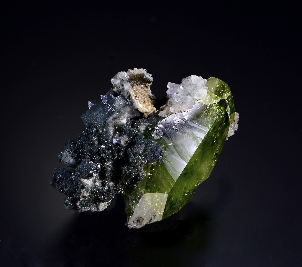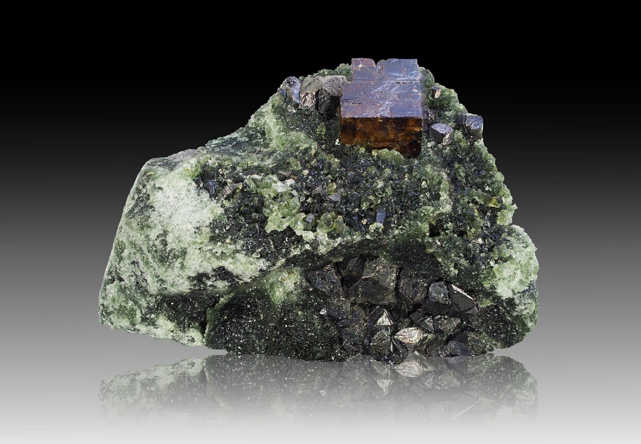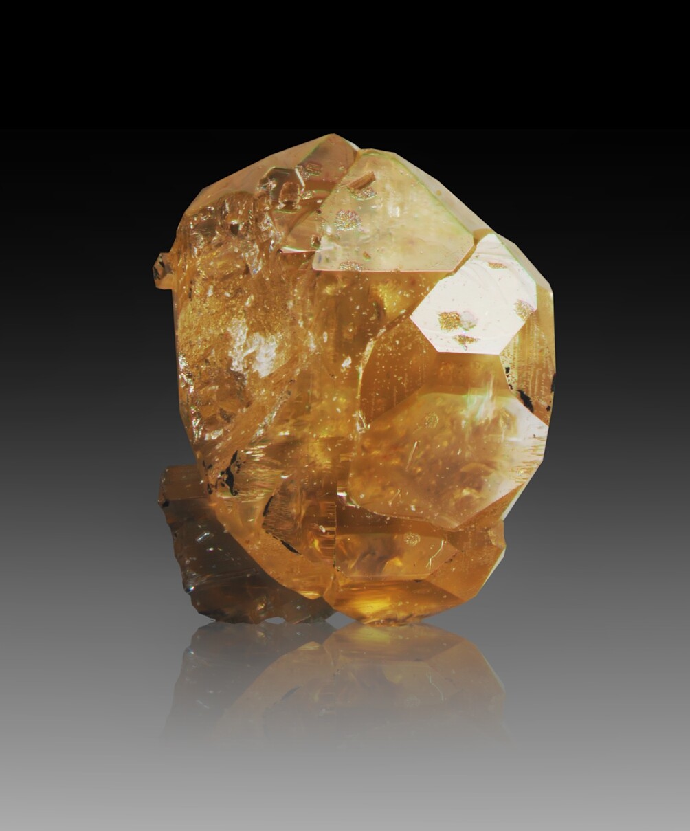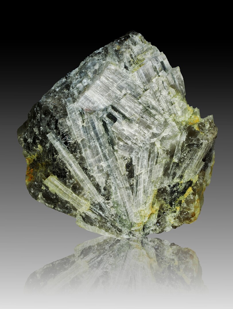 Diese Art der Mineralienfotografie ist üblich und verbreitet, unterscheidet sich jedoch in Details. Im Lapis Magazin ist der Hintergrund oft ein Spotlight, das den dunklen Hintergrund eher rundlich erhellt. Am Fuß des Minerales findet sich dann keine Spiegelung, sondern ein kleiner Schatten. Dieser insinuiert eine Beleuchtung des Stückes auch etwas von hinten. Weitere Möglichkeiten, den Mineralien räumliche Dimensionalität zu verleihen, kannst du beim kritischen Studium deiner Lieblingsfotografen erkennen.