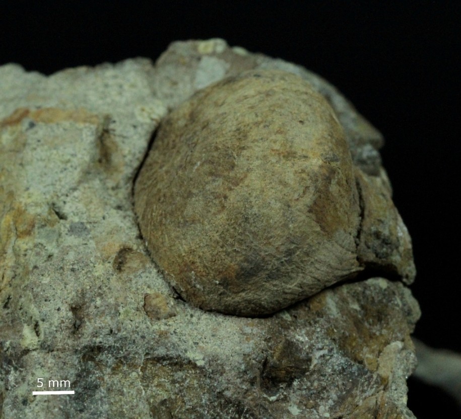 Ficus ceratops. Erst McIver (2002) wies nach, dass es sich um Palmenfrüchte handelt. Die gezeigte, permineralisierte Frucht
