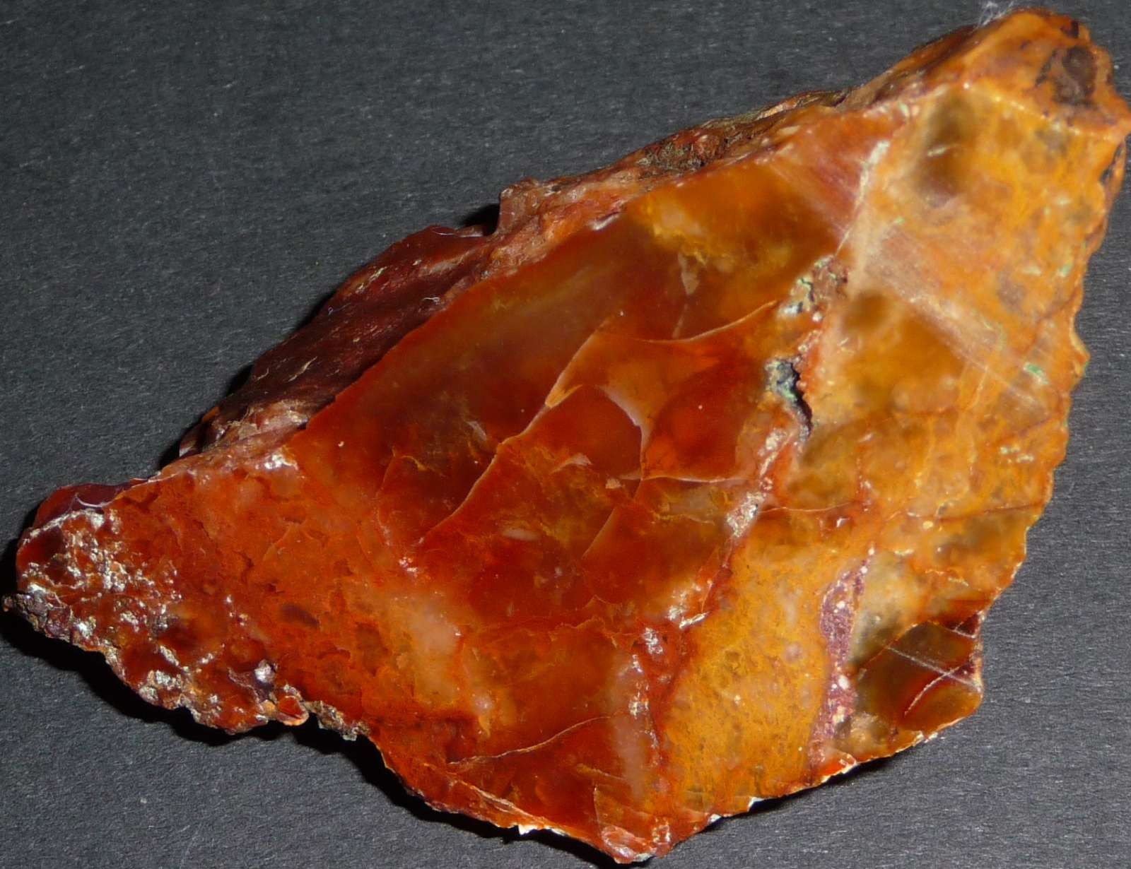 vielen herzlichen Dank, dass du geantwortet hast. Ja, der Fundort ist ja in der Nähe zwischen Grimma und Colditz. Es ist mir bekannt, dass es hier im Vulkangebiet liegt. Ich hatte mich schon seit einiger Zeit damit beschäftigt. Auf dem Acker gab es noch mehr rötliche Steine. So auch Quarz der rötlich eingefärbt war (sicher eisenhaltiger Boden). Aber auch richtig weißer Milchquarz. Auf dem Acker gegenüber fand ich sogar einen Amethyst. Ich glaube aber eher, dass die Steine hier auf den Bildern eher Karneol sind. Im folgenden Bild Nr.1 sieht man auf der Oberfläche des Steins runde Vertiefungen. Wenn es aus dem Geschiebe wäre, dann wäre es doch rundgeschliffen. Oder? Das 2. Bild zeigt nochmal wie durchscheinend der Stein ist.