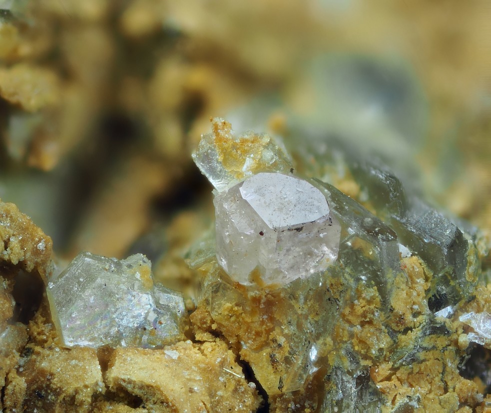 luminesziert ebenfalls (=alle bis auf einzelne Ausnahmen) , und zwar mit REE3+ als Leuchtzentren: typisch ist Dy3+ angeregt bei 365nm mit gelber Emission sowie Sm3+ angeregt bei 405nm mit oranger Emission. Daneben noch der ganze Zoo anderer REE3+ sowie strahlungsinduzierten Defekten und Uranylionen. Tatsächlich können Sm3+ und Dy3+ auch gleichzeitig angeregt werden, manchmal helfen Energietransferprozesse, sodass am Ende die beobachteten Lumineszenzfarben eben eher gelb oder eher orange oder manchmal auch weiss erscheinen...