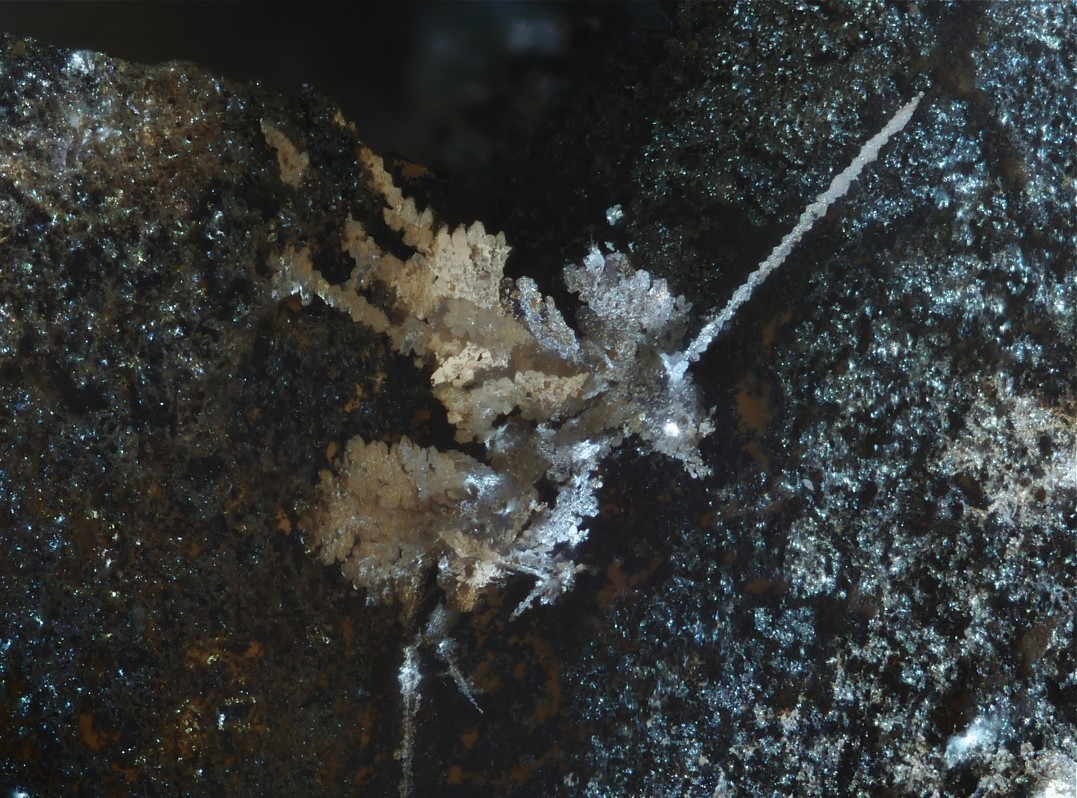 Nr.3 : bäumchenförmige Kristalle aus einem Haldenfund Schacht 139, Lauta,Erzgebirge; Bildbreite 10,5 mm