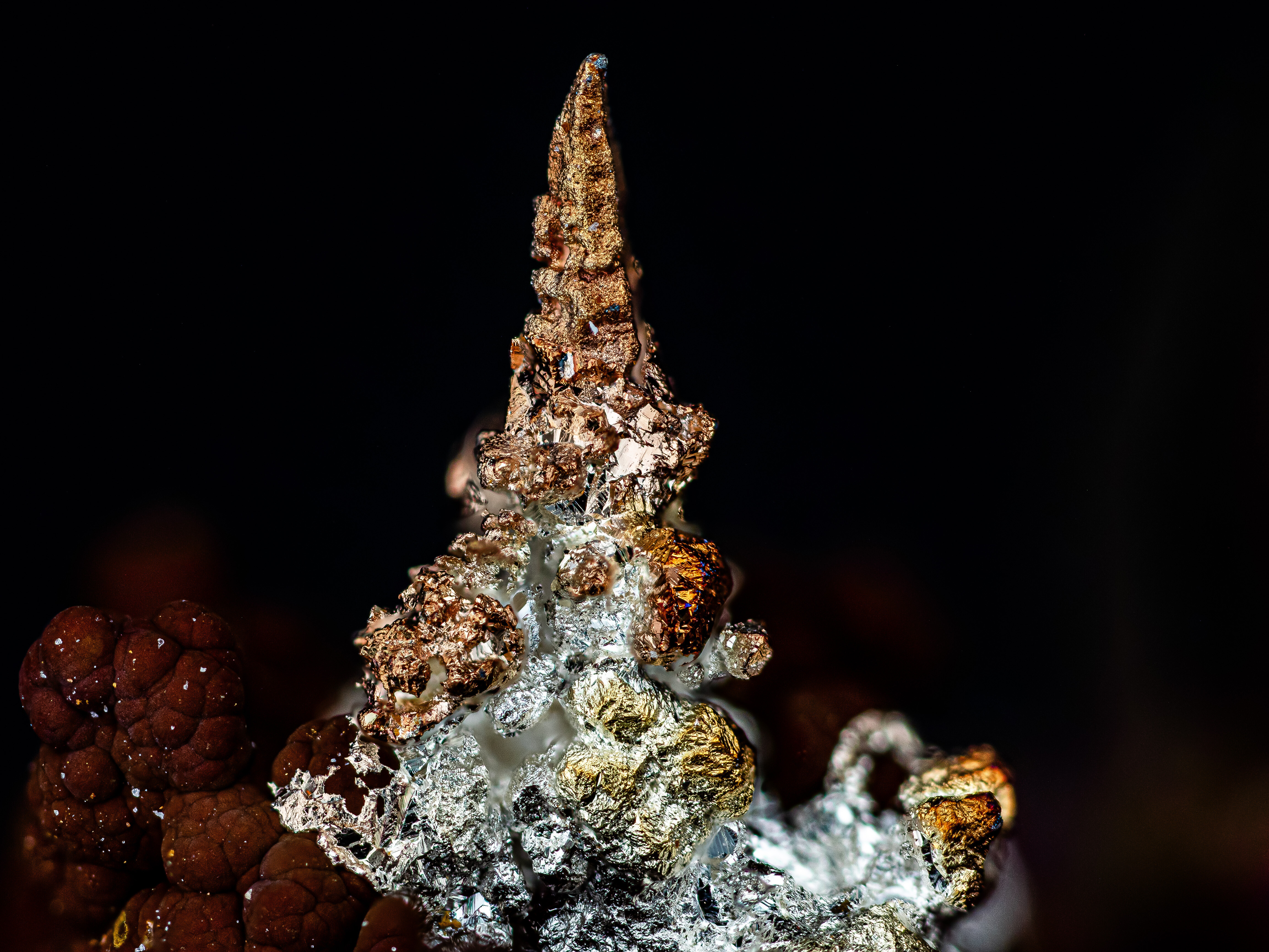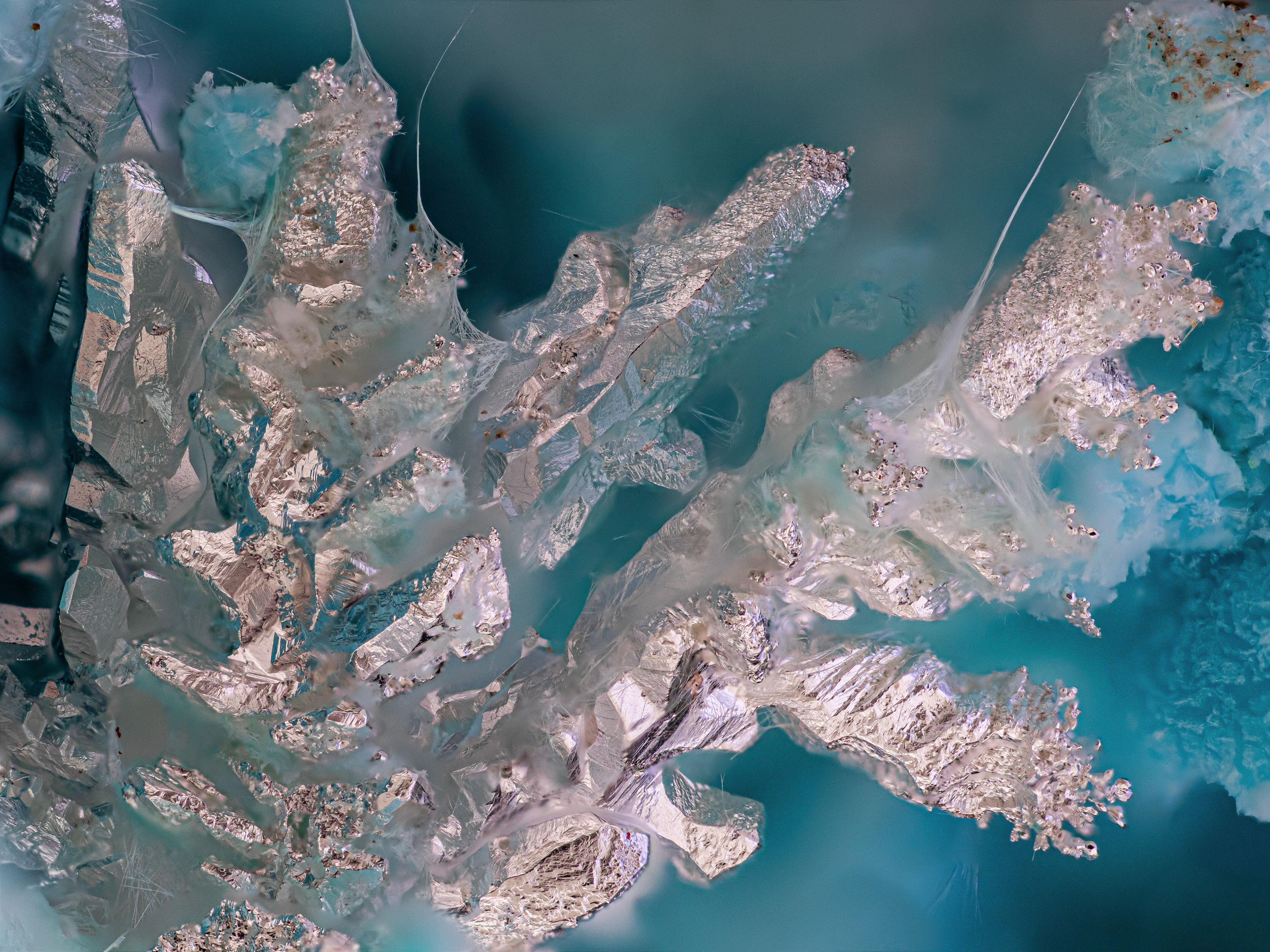 Bild2 Silber 02 Bergfrisches Silber auf Chrysokoll; Bildbreite ca 4mm; Eigenfund 4/2024