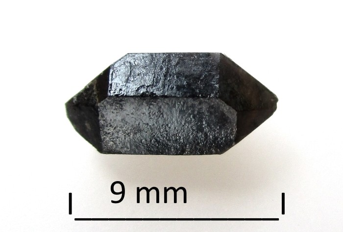 mir sieht das, zusammen mit den anderen kleinen Doppelendern (z.T. Eisenkiesel, sh. die andere Bildersiskussion) eher nach einem authigenen Quarz, der durch kohlenstoffhältige Einschlüsse gefärbt ist, aus.