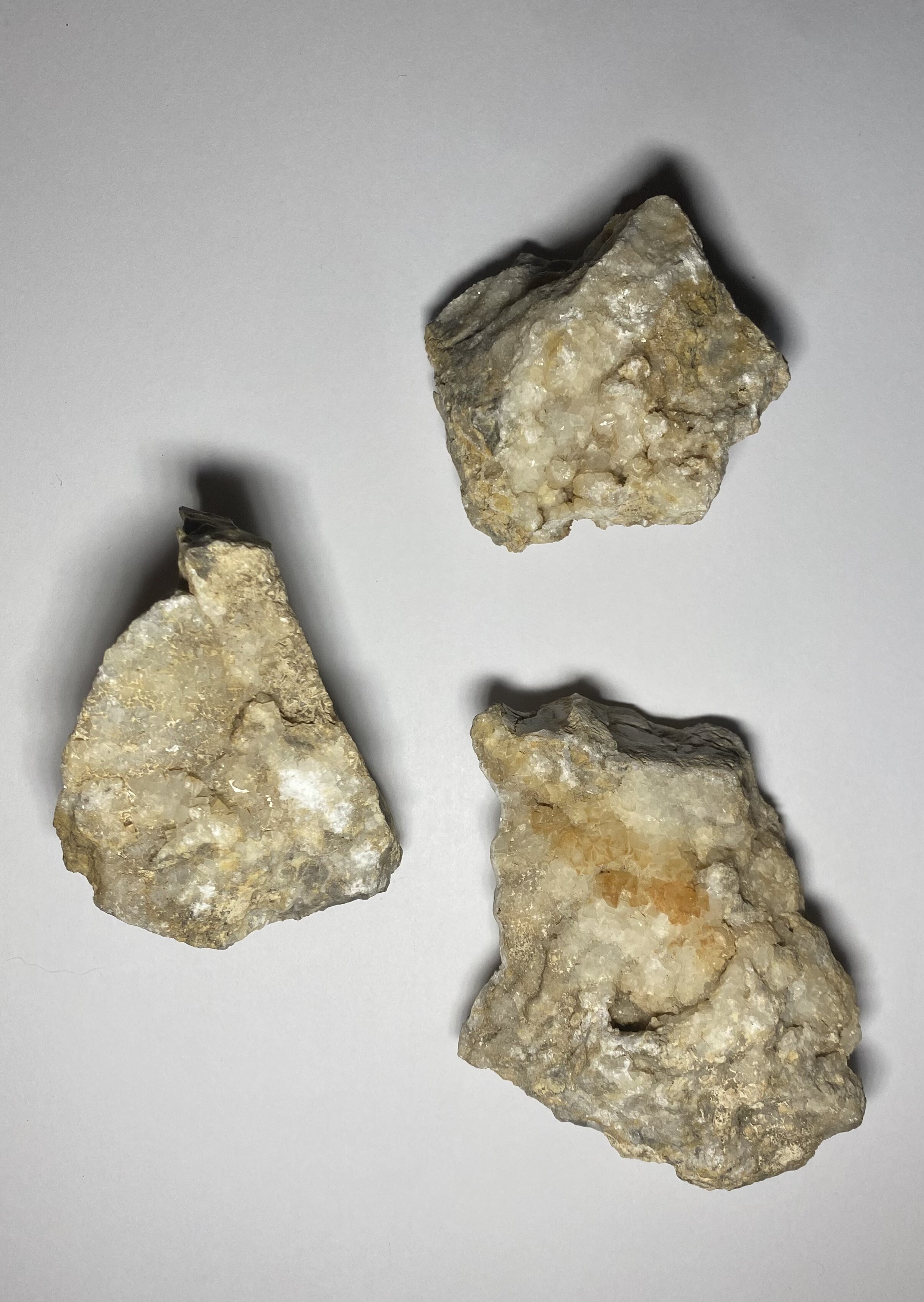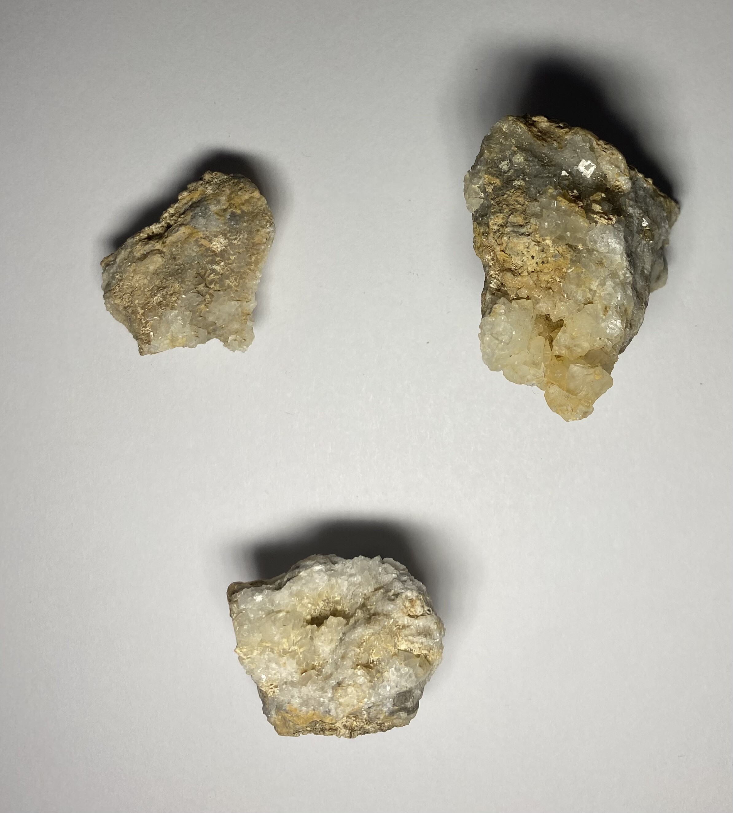 Die Bilder sind nicht optimal, aber für mich sieht dieses und das Zweite aus wie Calcit in flachrhomboedrischen Kristallen auf Kalksteinmatrix. Hinweise für kubische Kristalle/rechte Winkel sehe ich nicht. Und es heißt Fluorit, nicht Flourit.  ;)