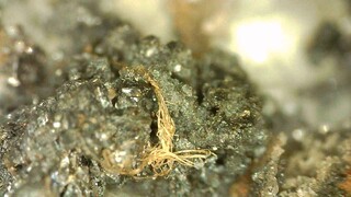 ich habe mir die Stufe heute unter dem Mikroskop angesehen. Die Fasern sind durchscheinend. Gold möchte ich gesichert ausschließen. Ich vermute, dass die Beleuchtung hier zu einer Falscheinschätzung geführt hat. Es gibt noch ein ähnliches Faserbündel nur nicht ganz so mit den Kristallen verwoben. Ich denke es sind Reste vom Verpackungsmaterial nach der Bergung. Auf der Stufe sind aber sehr schöne Silberdrähte und Galenit-Kristalle.