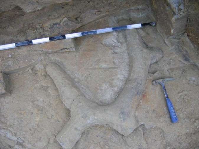 Ohne auf dem verschlammten(?) Brocken irgendwelche Details des Gesteins zu erkennen können, würde ich bezüglich geologischer/geochronologischer Einschätzung mal ganz vorsichtig zu Trias?/Muschelkalk?? tendieren ....