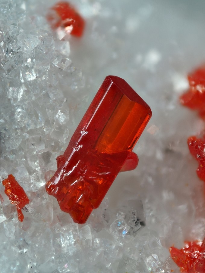 Kristallform und Farbe, sowie Glanz erinnern mich an Realgar vom Lengenbach.