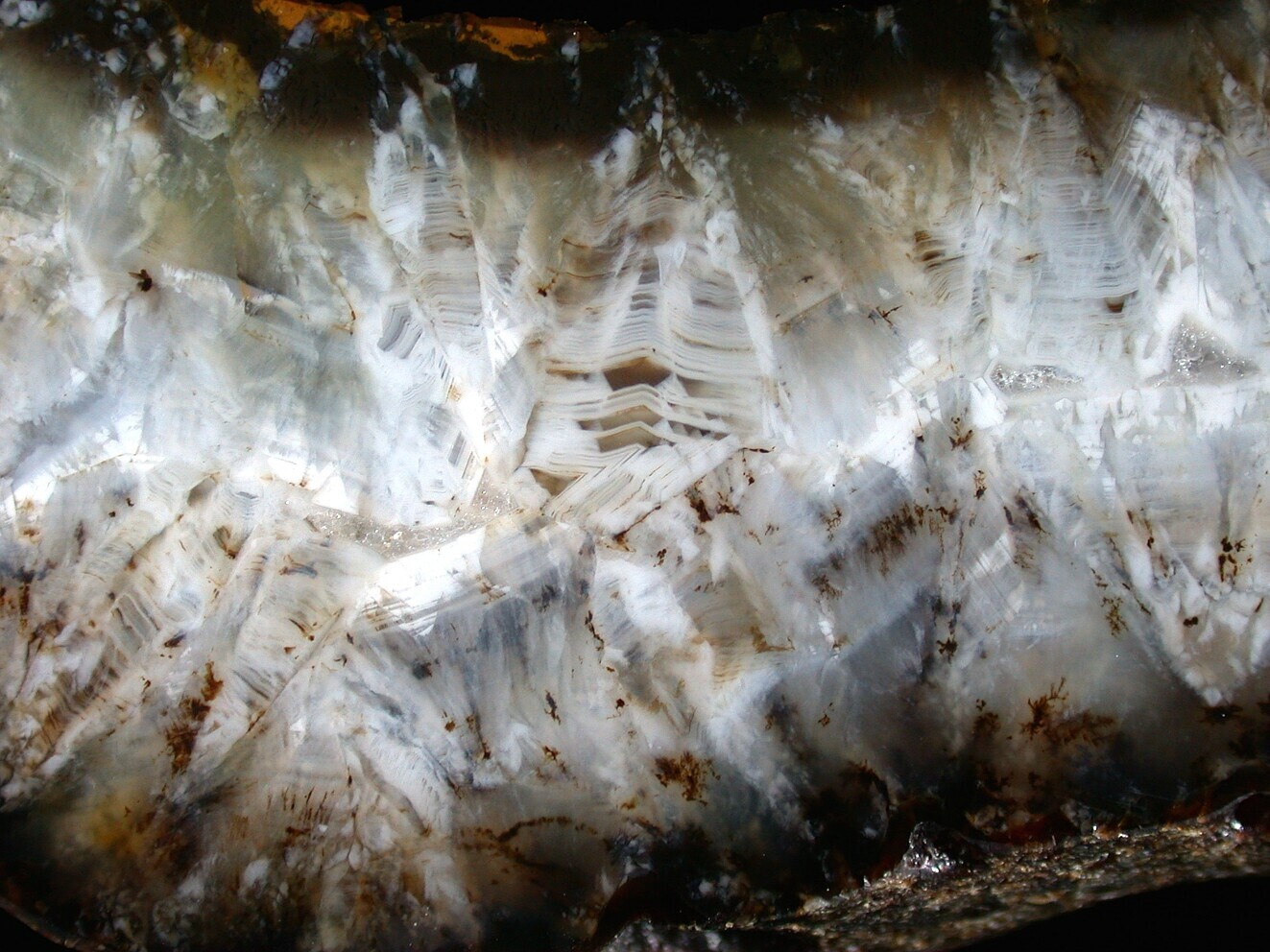 Zum Schluss noch eine ganz besondere Zeichnung in Achat, die ich als Pseudomorphose von Achat nach makrokristallinen Quarzen deute: