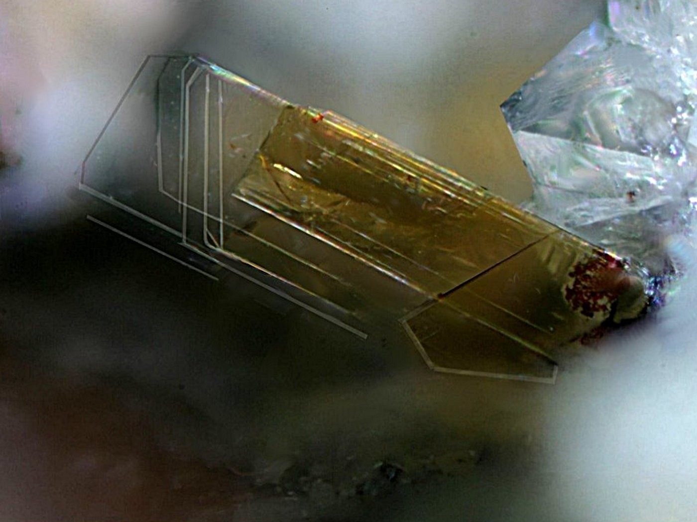 Die farblosen Kristallenden können, wie auch evtl. der intensiver braune Bereich ein Glimmer der "Phlogopit-Reihe" sein!