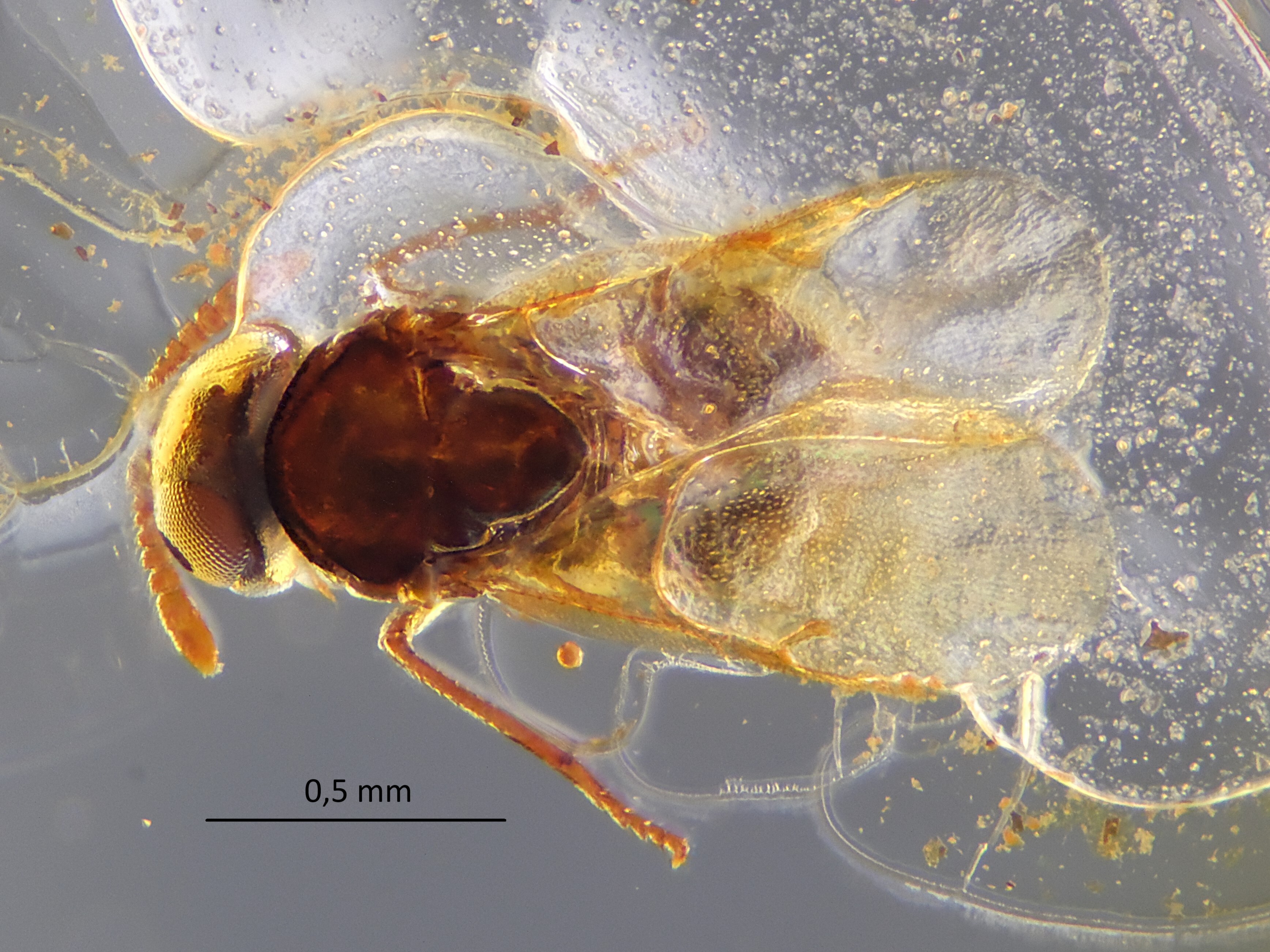 Die "Neutralität" dürfte damit zu tun haben, dass ich den Bernstein, um adäquate Untersuchungen zu ermöglichen, zu einem Plättchen von ca. 3 mm Stärke schleifen musste. In Verbindung mit einem dunklen Hintergrund entsteht dann dieser Farbeindruck.