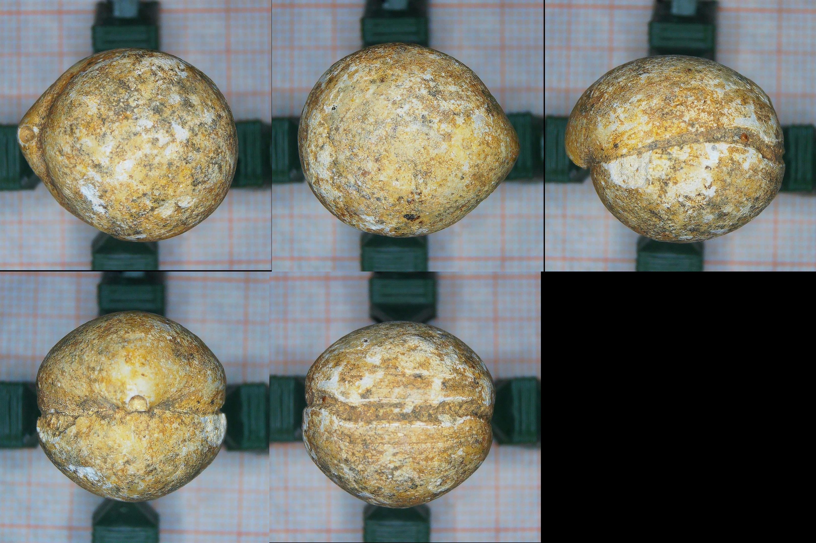 Was ein wenig an ein rundes Bonbon erinnert, ist ein Brachiopode der Art Sphaeroidothyris globisphaeroidalis (S. Buckman 1918).