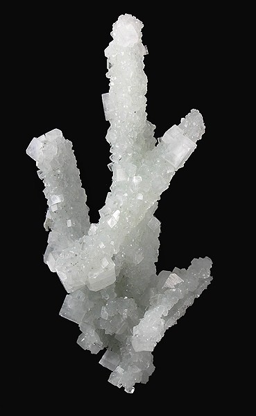 bei den Mineralien von Indien vertraue ich B. Ottens und seinem Buch zu Indien (2011). Dort schreibt er mehrfach (S. 223, 226, 229, 312), dass Prehnit diese typischen Umhüllungspseudomorhosen nach Laumontit bildet. Die Stufen stammen vom Fundbereich Mumbai-Malad. Der aufsitzende Apophyllit von dort in dieser Paragenese sei immer Hydroxiapophyllit. An anderen Fundorten in Maharashtra, Indien komme dagegen Fluorapophyllit vor.