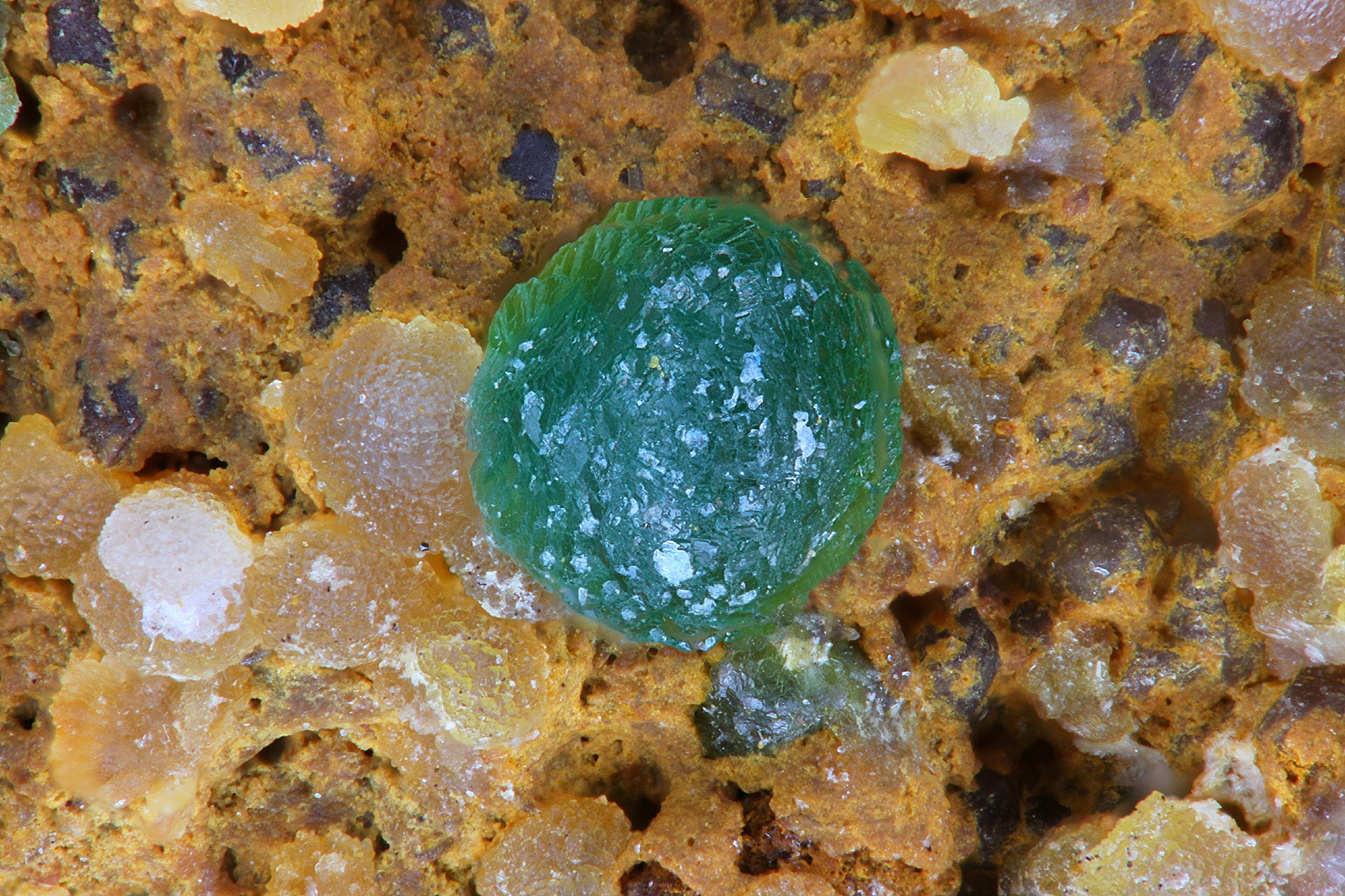 kugelig aggregierter Chalkosiderit (oder Türkis?) mit Strengit