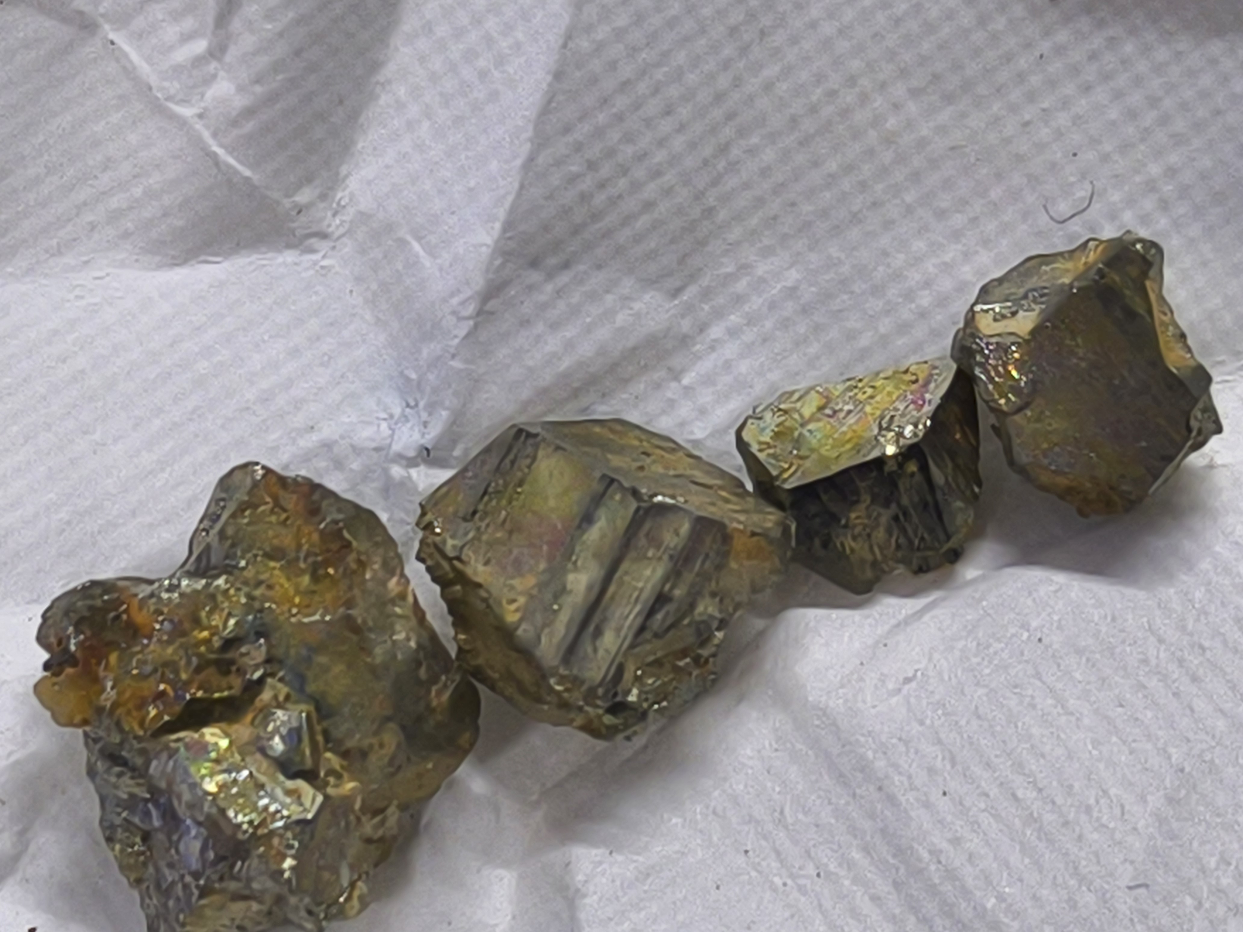 schlimmer ist das andere Foto derselben Pyrite auf der beschrifteten Holzscheibe