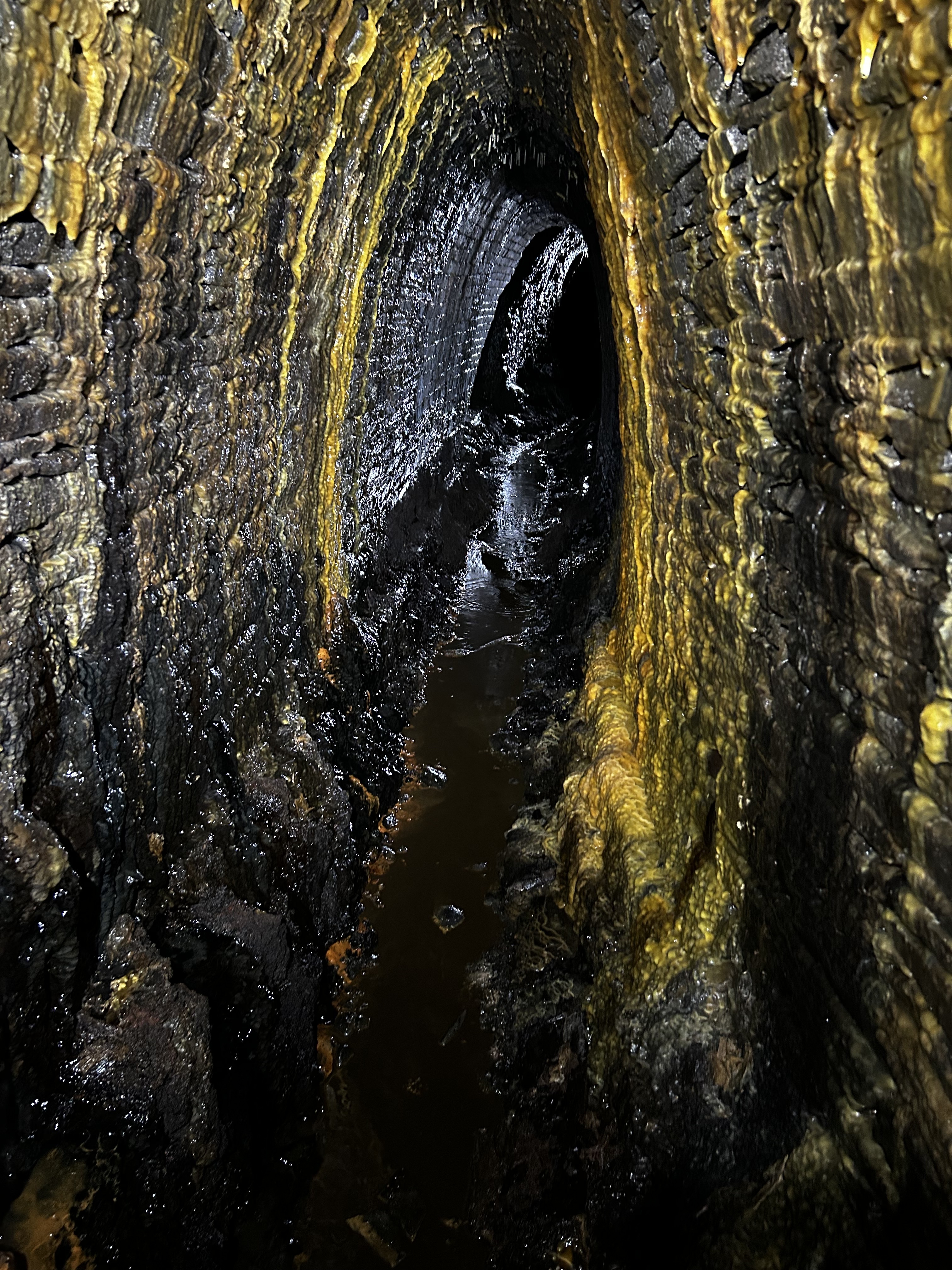 Also erstmal vorweg die Auffahrung ist natürlich nicht von der Wismut, im Stolln findet man Jahreszahlen vom 18. und 19. Jahrhundert. Jedoch, wenn man ein Stück weiter läuft, sind da keine Sinterablagerungen mehr und man kann die Ziegel sehen. 1. steht da, Monat.../1946 und es handelt sich um die roten Ziegel, welche meines Wissens nach typisch waren, auch wenn klar ist, dass dieser Stolln uninteressant für die Wismut war.