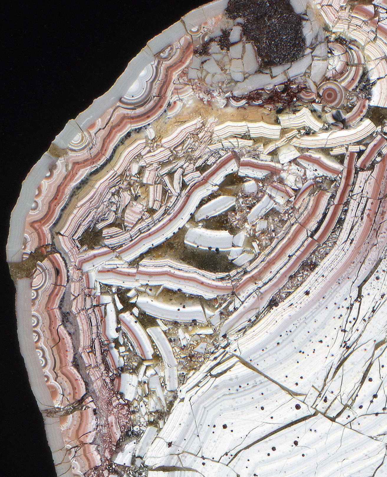 ....ich glaube,das ist eine voreilige Meinung,schau Dir mal genau die Struktur an ;m.E. sehen Skolezite ein wenig anders aus....zumal ich sehr viele dieser Achate habe.Und,das vorherige Bild zeigt einen Ausschnitt der geschliffenen Fläche .