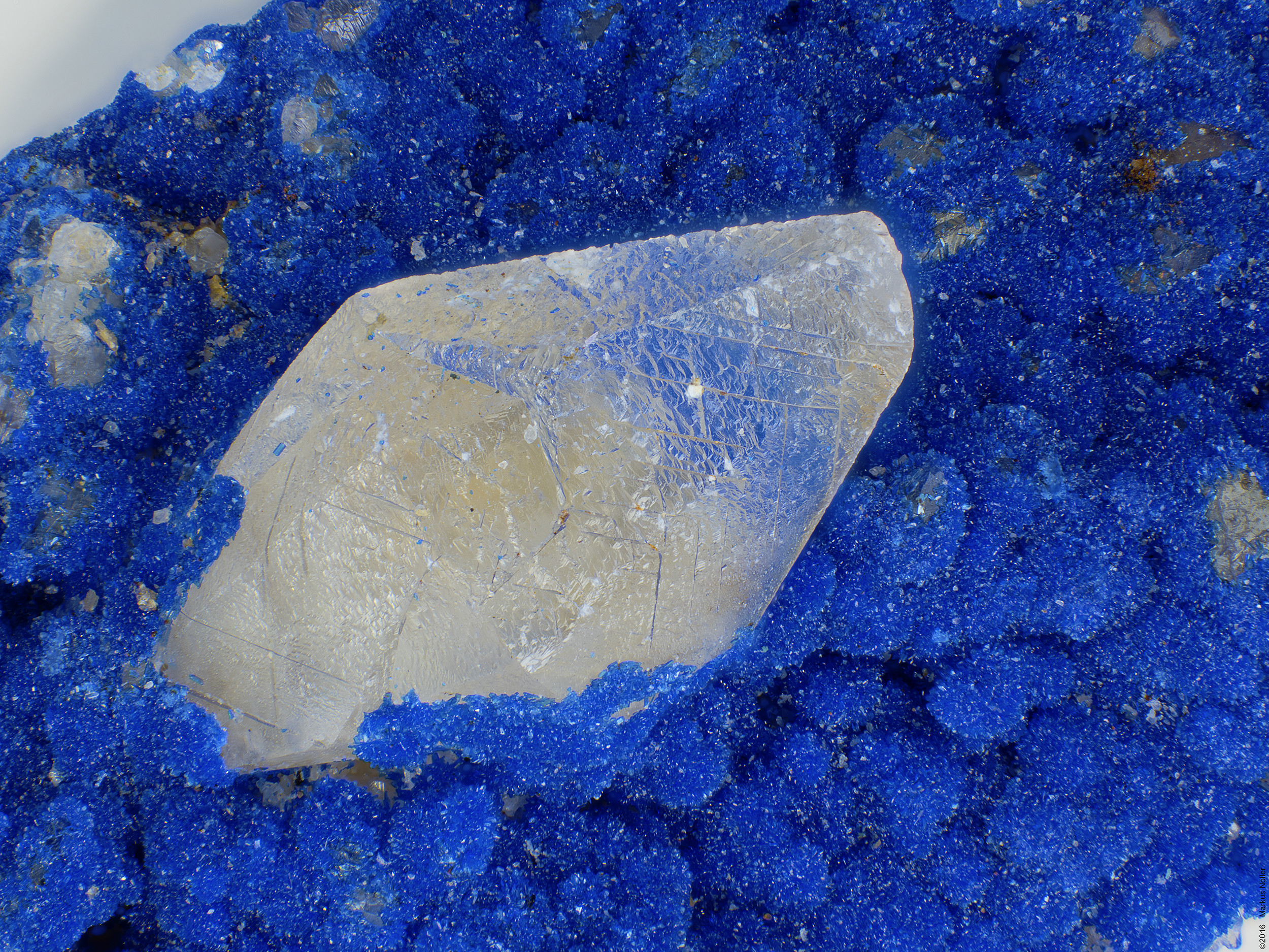Calcit x auf Azurit xx aus der Bauernzeche St. Gertraudi bei Brixlegg/Tirol: