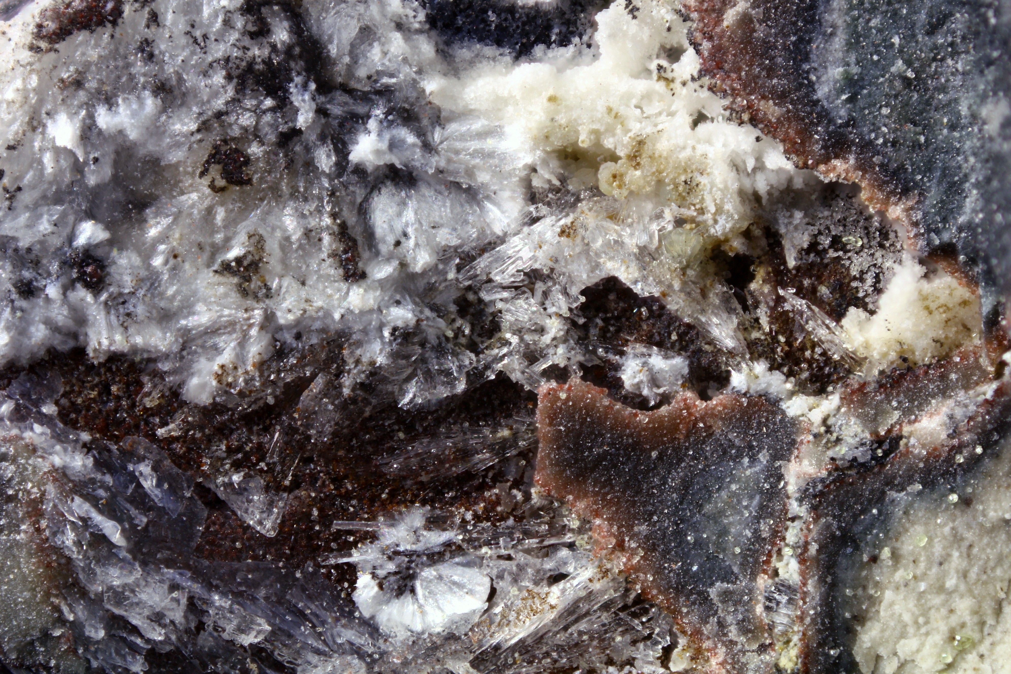 Ich meine, mal etwas von einem Haldenbrand im Ronneburger Revier gehört/gelesen zu haben. Hierfür sprechen auch die für die Absetzhalde gelisteten Ammonium-Minerale. Zu dieser Paragenese dürfte der Hannebachit auch gehören, ebenso wie das zweite Hannebachit-Foto, das derzeit nur allgemein dem Revier zugeordnet ist.