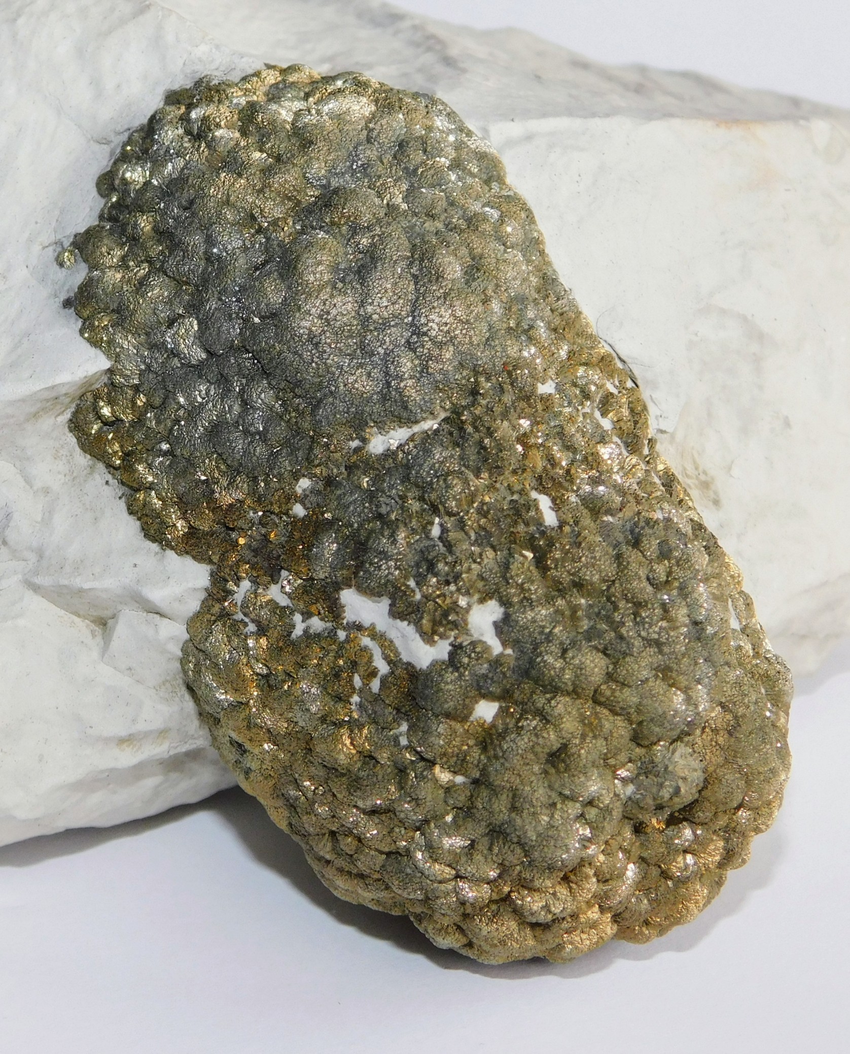 habe die Tage ein ähnliche Stufe ins Lexikon gestellt; meine ist nur sehr viel größer in den Ausmaßen ebenfalls ins Kalk gebettet. Ich würde demnach auch sagen, dass es sich hierbei um Markasit handelt.