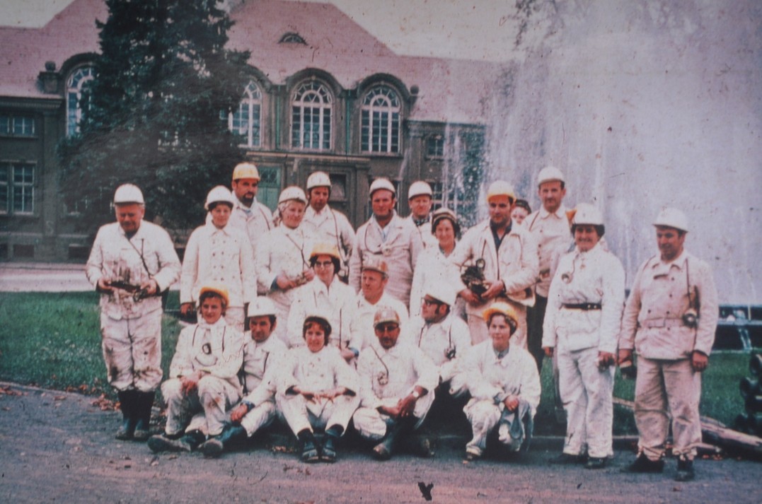 hier gebe ich Doc Diether recht. Lediglich die Obersteiger hatten das Privileg weiße Kleidung (incl. Helm) zu tragen. Auf Bildern und in Filmen über die Grube sind die Arbeiter alle in normaler Arbeitskleidung zu sehen. Dass es unter den Bergleuten auch Frauen gab ist mir nicht bekannt (bin in den mir zur Verfügung stehenden Unterlagen auf keinerlei Frauennamen gestoßen). Hier könnte höchstens das Mannesmannarchiv weiterhelfen.