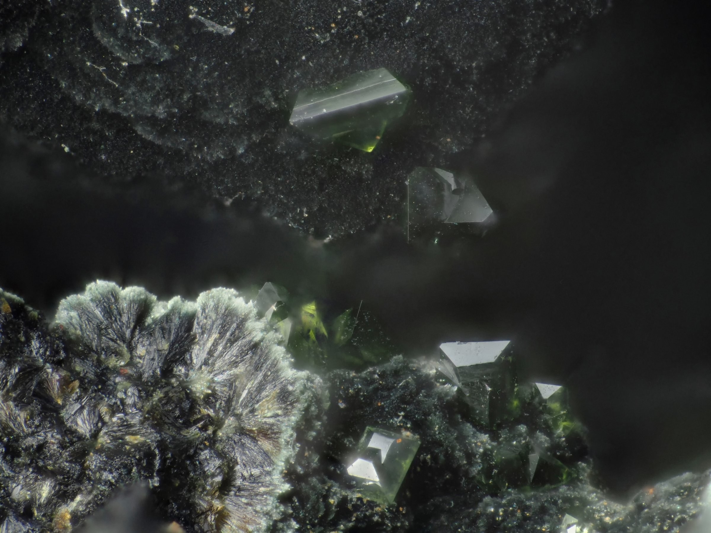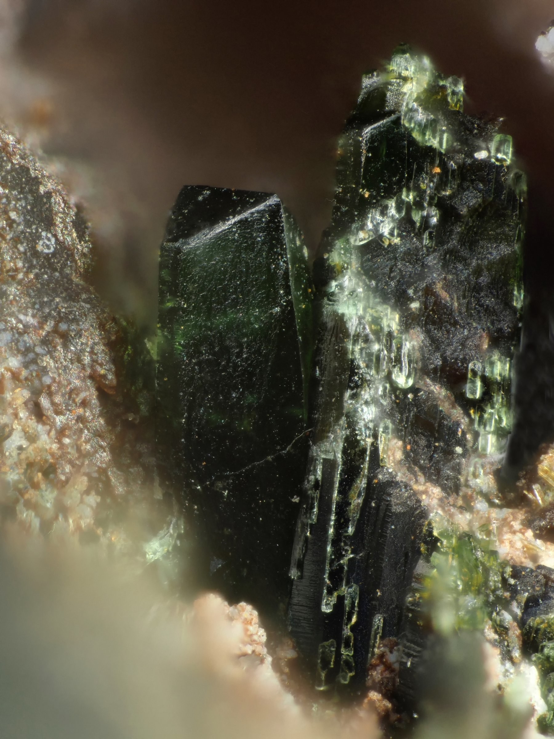 eine "besondere Rarität" wie im Buch von Kastning und Schlüter erwähnt, Libethenit gestreckt, leicht keilförmig von Haggendorf-Süd: