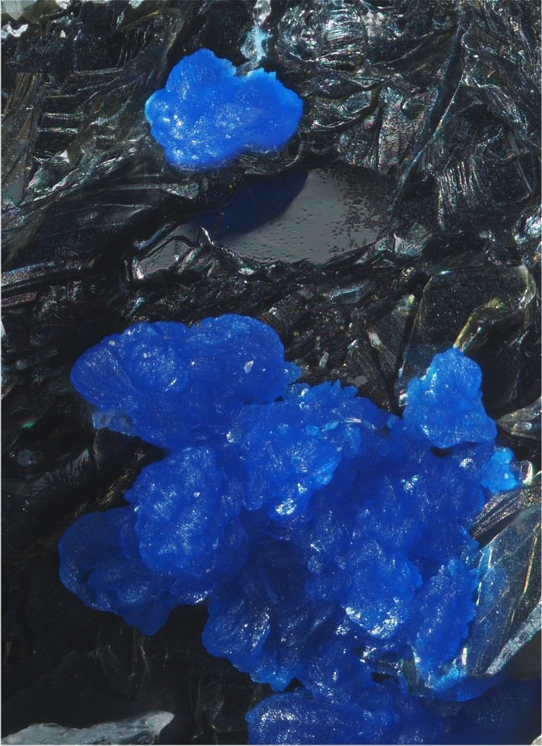 Dein Bild überzeugt jetzt durch graphische Elemente (Große diagonale Bildteilung in Grau und Blau, die gegenläufige Diagonale wird durch Formwiederholung kleinerer Elemente (schräge Kanten der Kristalle) ebenfalls ins Spiel gebracht), durch eine Drei-Gliederung in der Tiefenstaffelung von vorne nach hinten (Quarz, Linarit, Grau) und farblich durch eine interessante, vibrierende blaue Tönung der Kristalle.