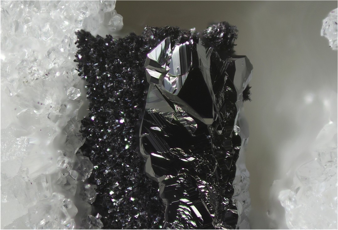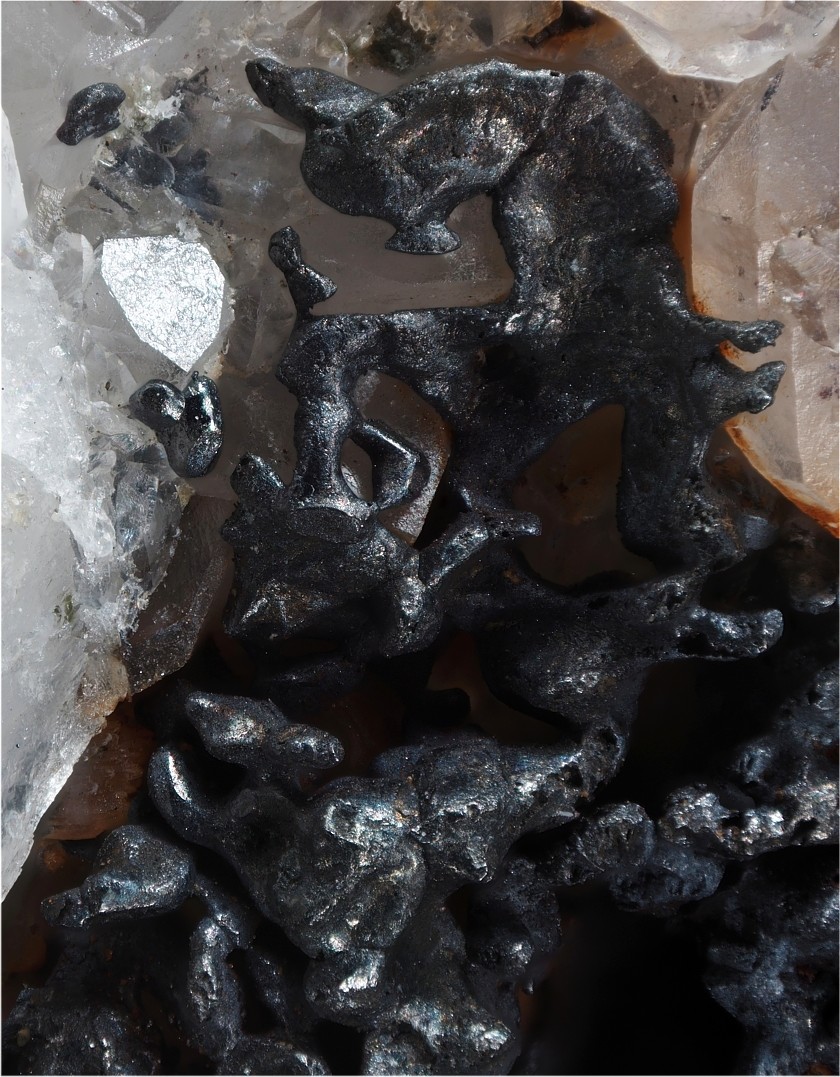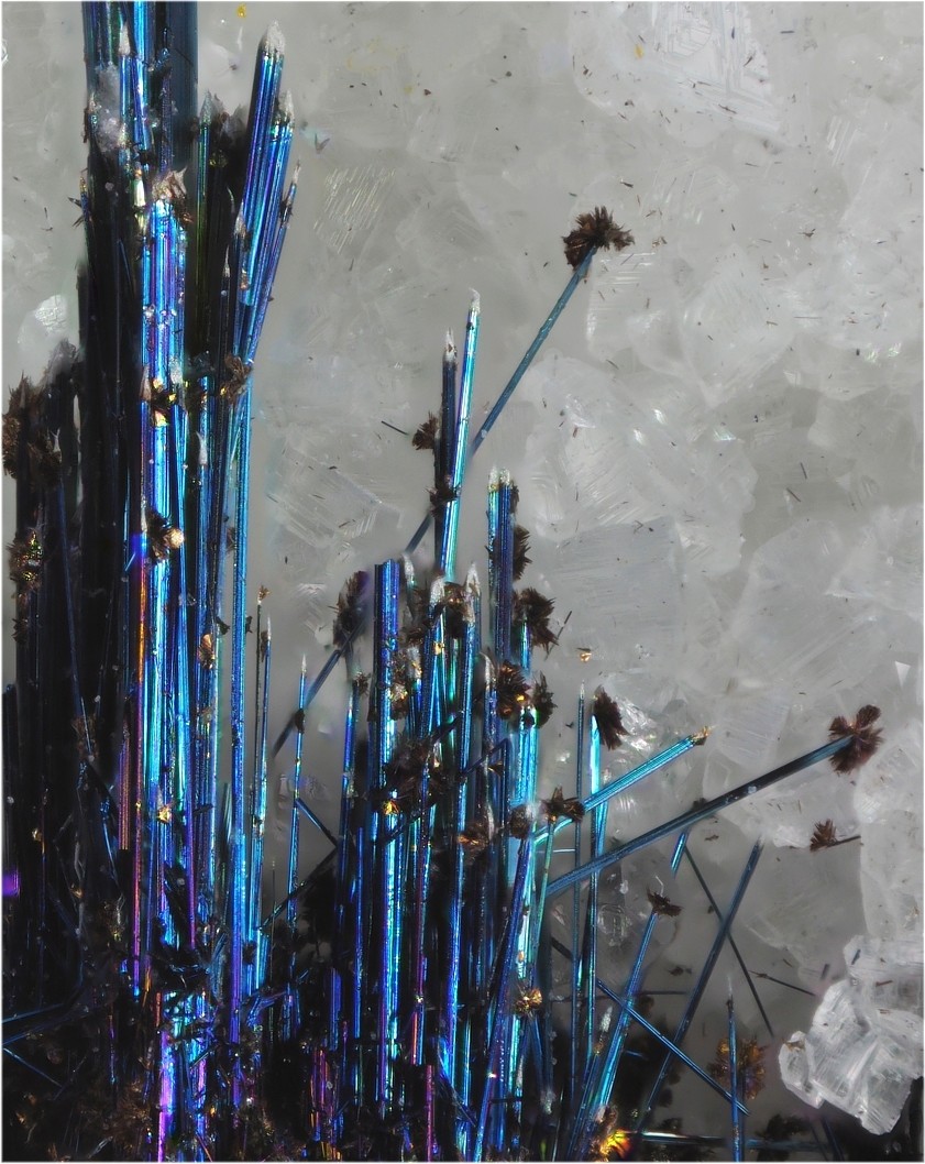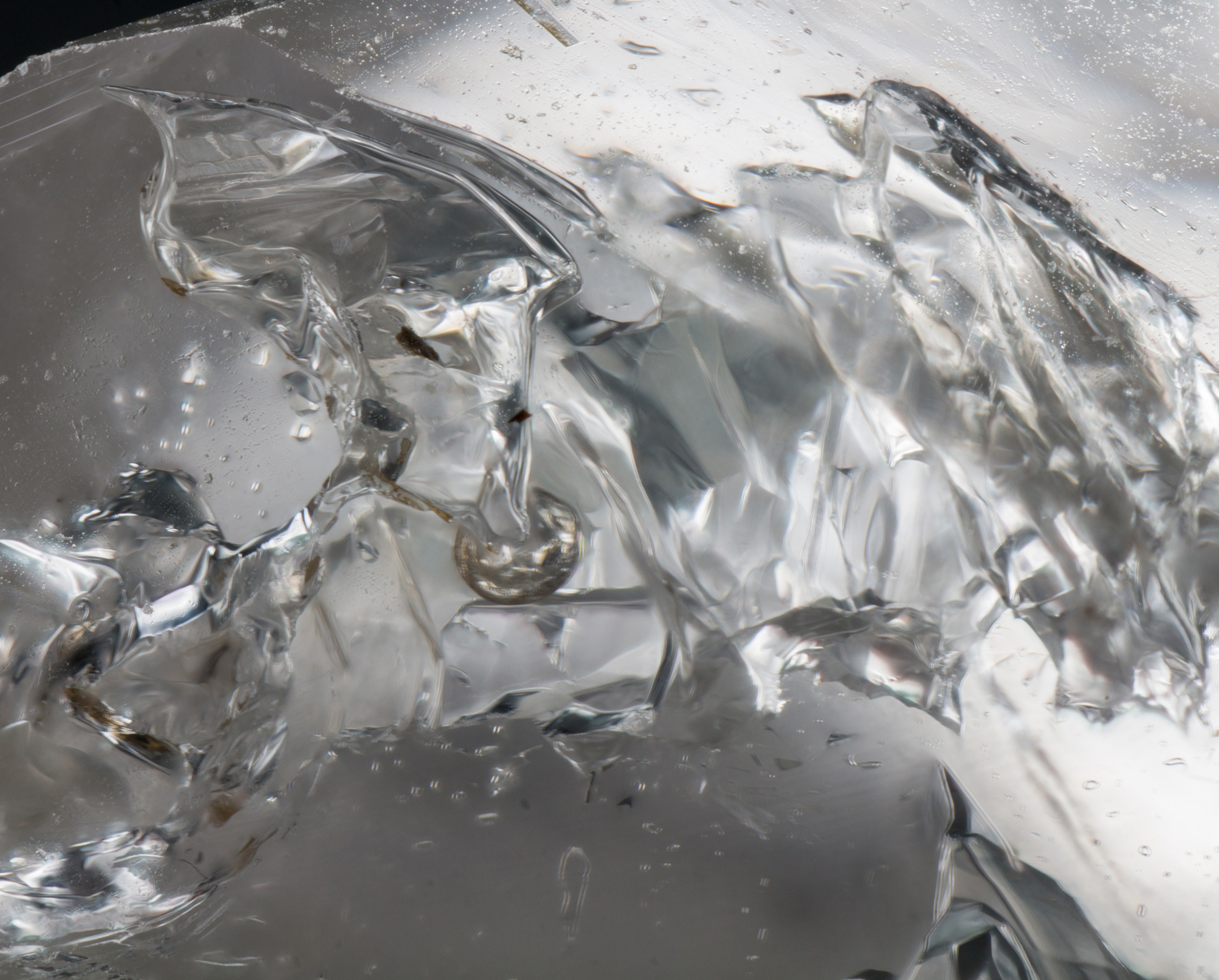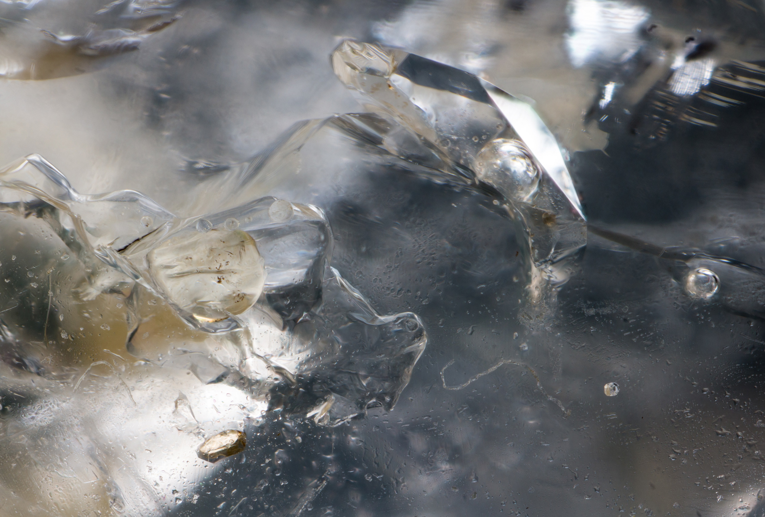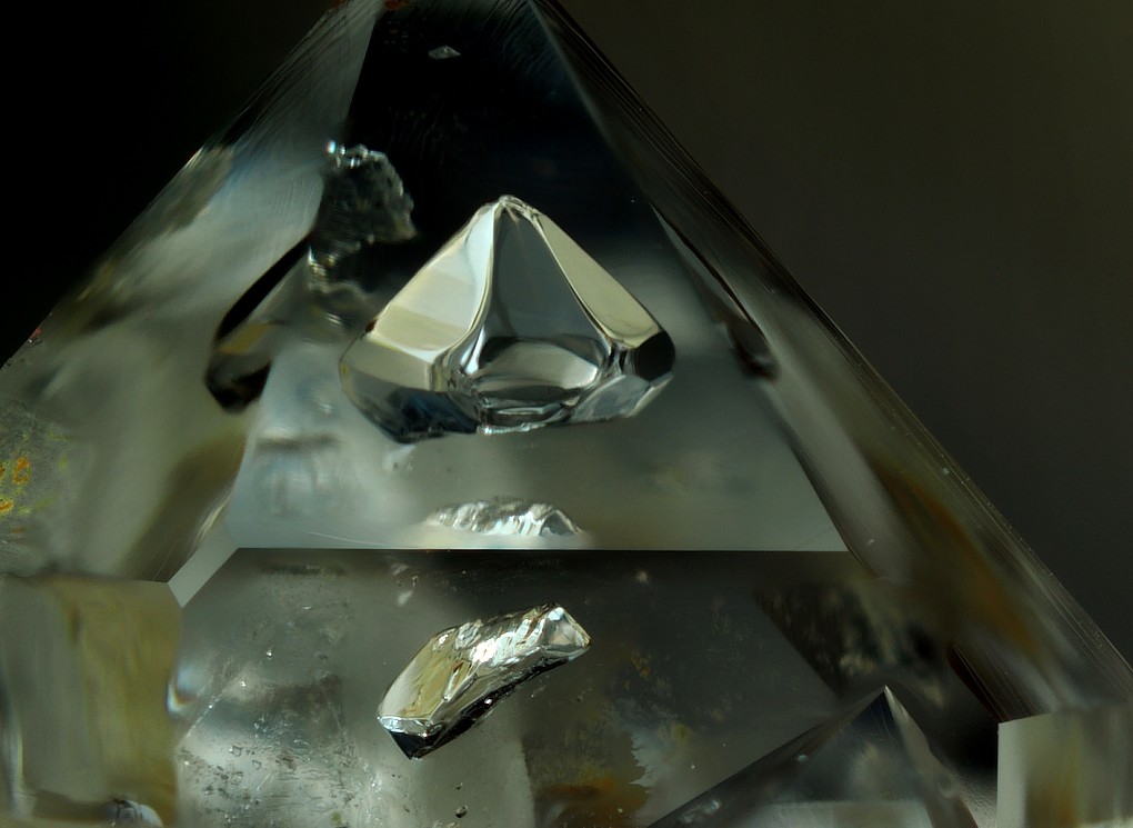 Hier eine kleine Auswahl von Quarzkristallen mit Vakuolen und Libellen sowie Negativkristalle mit Einschlüssen aus Südfrankreich. Die Einschlüsse in den Vakuolen und Libellen können unter anderen aus Kohlenwasserstoffen, Petroleum, Methan, Bitumen und Wasser bestehen. Die Aufnahmen wurden mittels Fokusstacking aus bis zu 200 Aufnahmen zusammen verrechnet, dennoch kommt es manchmal zu unschärfen da die die Kristallflächen wie ein Prisma wirken.
